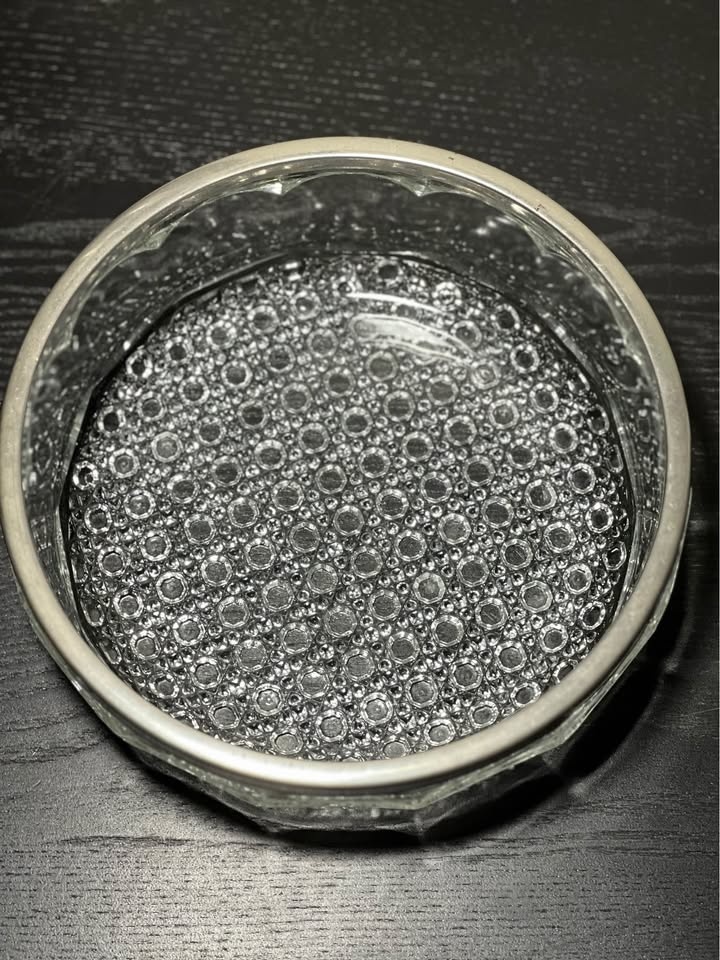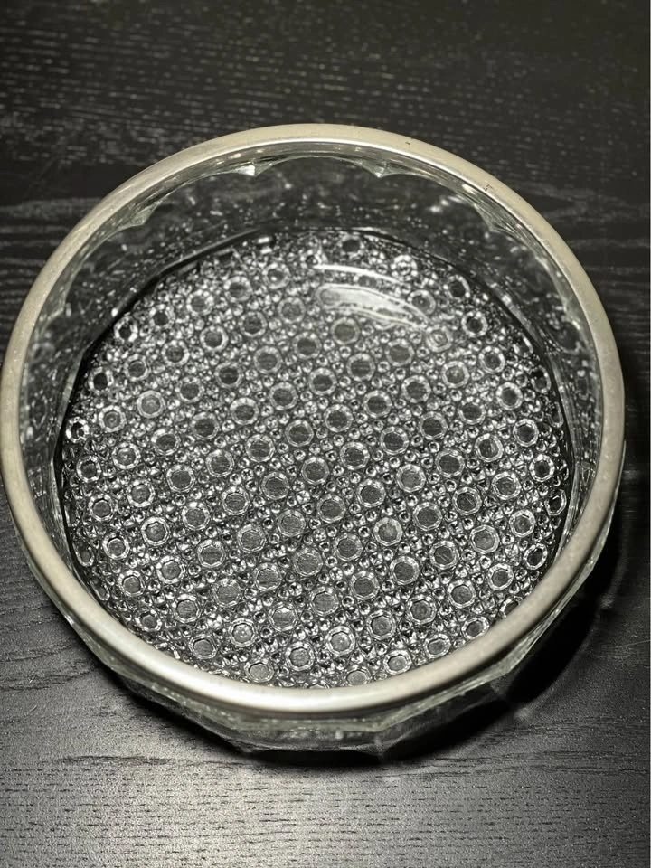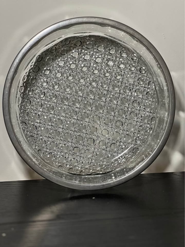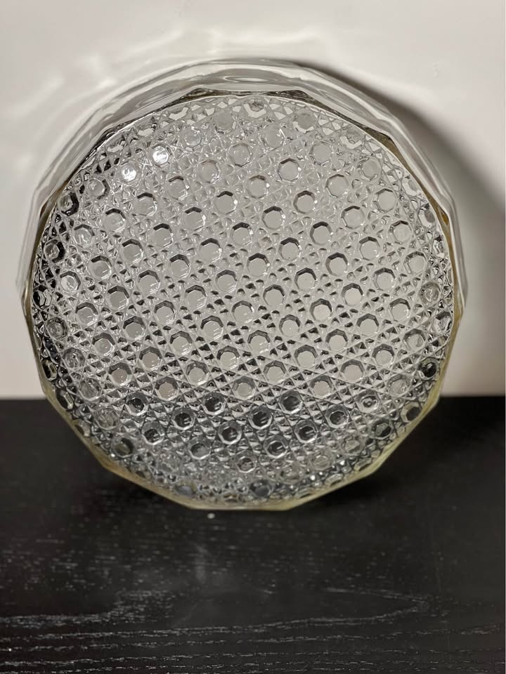 Design/Pattern: The base of the bowl features a distinctive, highly textured pattern resembling a dense arrangement of circles or "bubbles," often referred to in sales listings as "button and cane" or "hobnail".