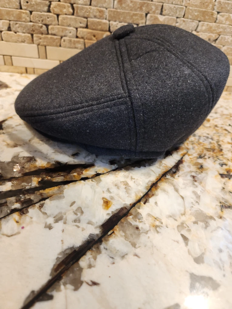 Here's a stylish newsboy cap for adults in a versatile grey colour! It also has ear flaps for extra warmth during those chilly Canadian days. Perfect for adding a touch of classic style to your wardrobe. New