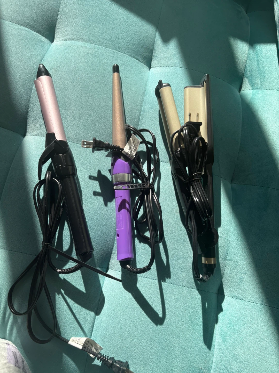 Selling a bundle of hair styling tools! Includes a curling iron, a curling wand, and a hair waver. All are in great condition and barely used. Ready for a new home