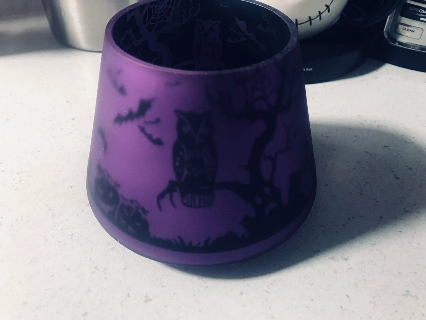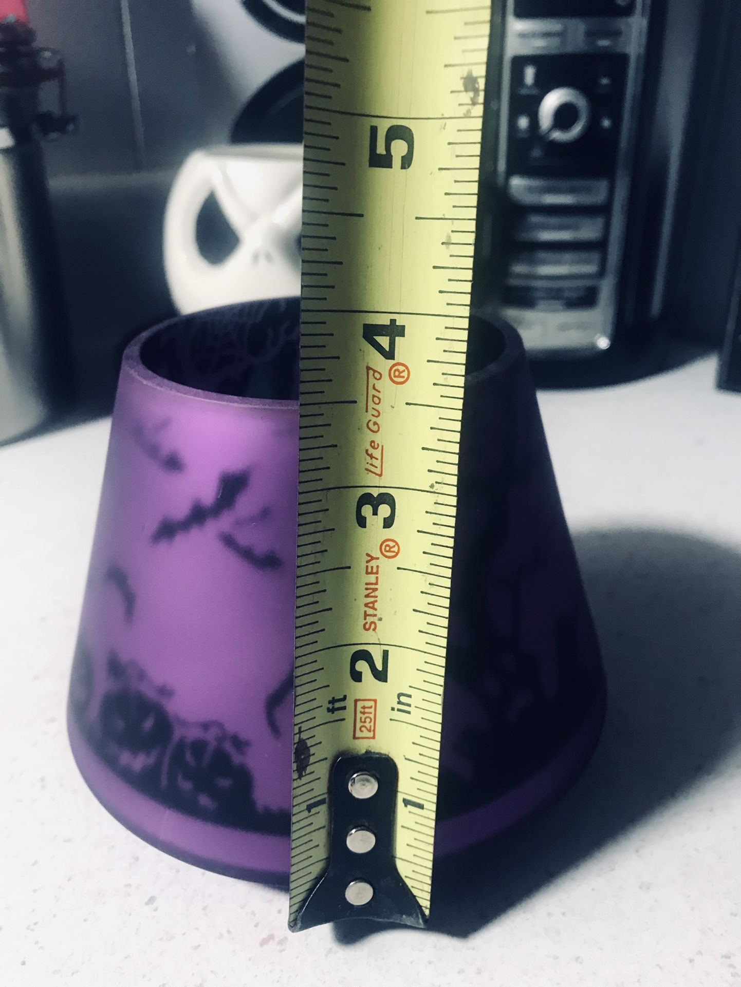 YANKEE CANDLE HALLOWEEN GLASS JAR CANDLE LAMP SHADE TOPPER. Used only a few times, never lit a candle on it. Technically it’s new. Measures 13/16 wide, 3 1/2 tall. Thanks and God bless