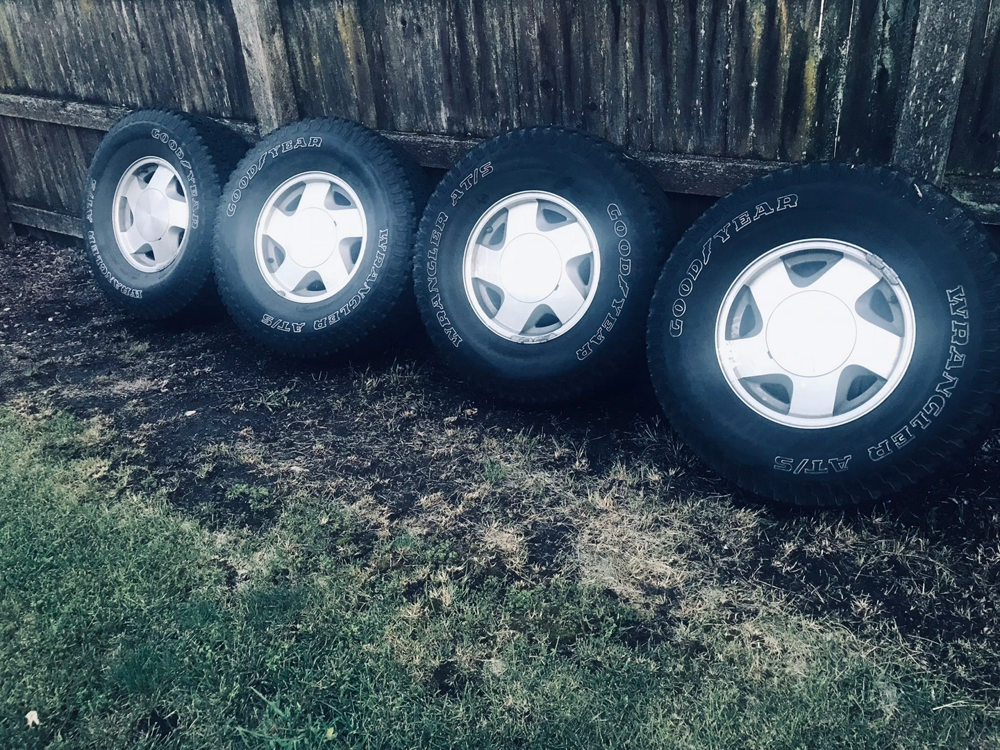 Selling my old wheels, tires need to be replaced. They are over 20 years old and very dry rotted. The 16” wheels are in great shape, just need to be cleaned.