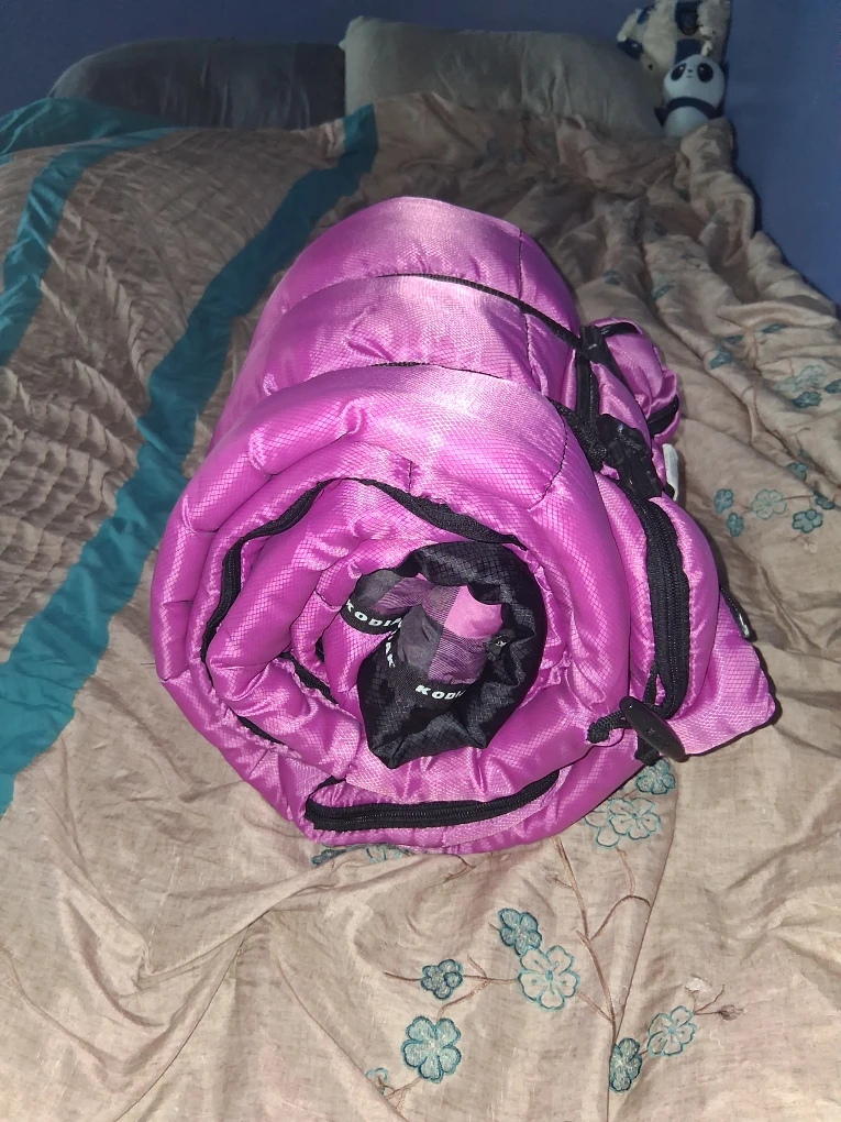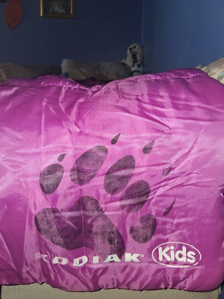 Selling a pink Kodiak Kids sleeping bag. Please note that one of the clips is broken, as shown in the pictures. Still a cozy and functional sleeping bag for your little one! It has a small pocket to store small belongings, see pictures. It has been stitched in one spot can't show in pictures as it only let's you post 6. I can send it in private message if you would like to see.
