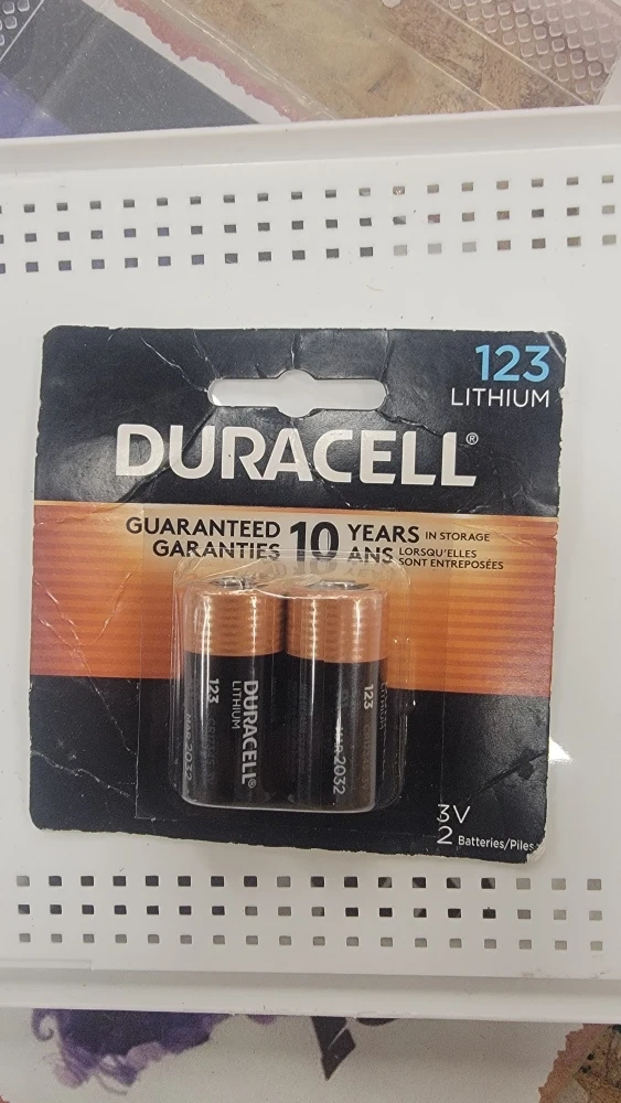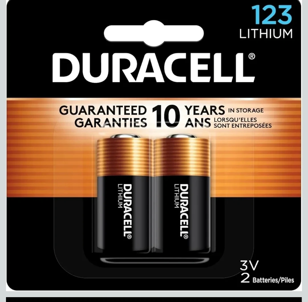 Selling a 2-pack of Duracell 123 Lithium 3V batteries. These batteries are guaranteed for 10 years in storage, so you can be sure they'll be ready when you need them!