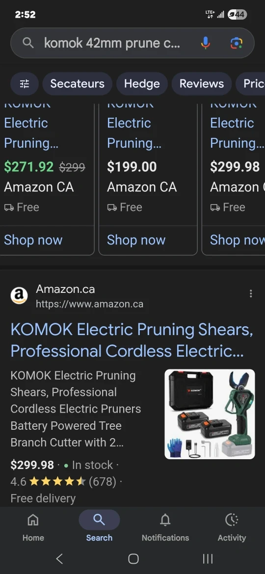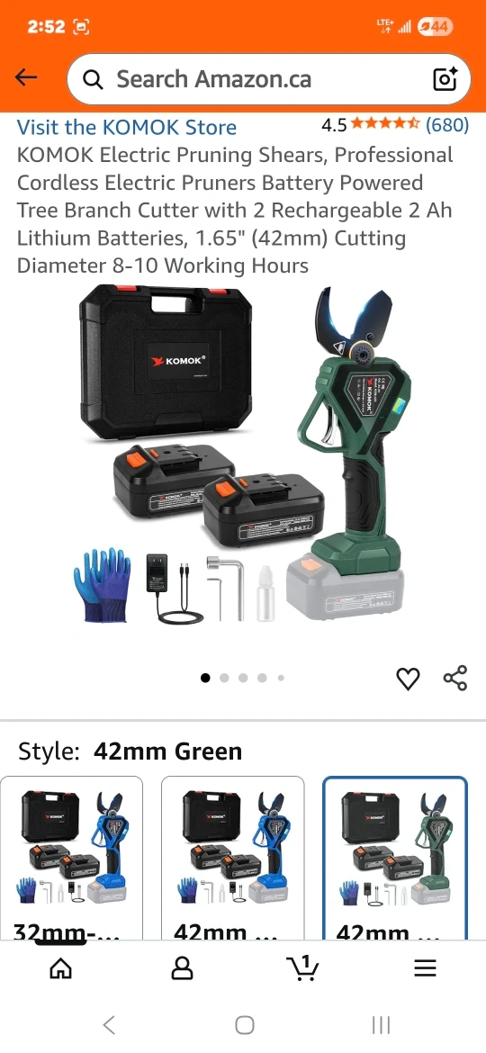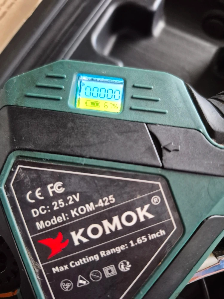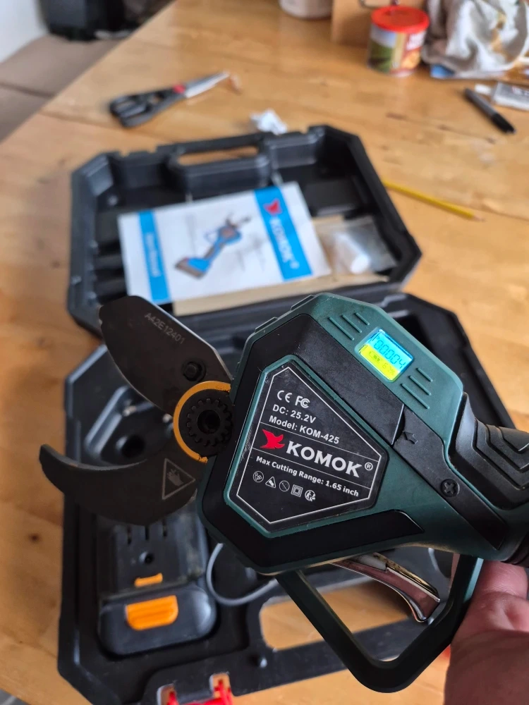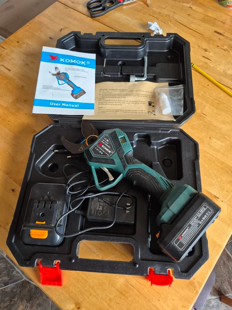 Selling a KOMOK KOM-425 electric pruning shear with 2 like new batteries. It's in like-new condition and comes with the original box and user manual! Original price was 299$ as its Heavy-duty. Digital counter battery health meter.