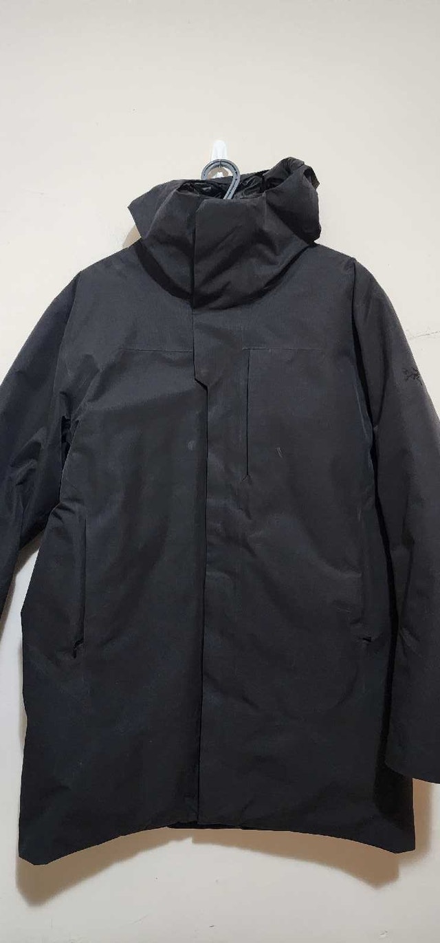 This is an Arc'teryx winter therma down parka, perfect for braving the Canadian cold, equipped with a hood and sleek design. Overall, it is still a very functional and warm winter coat. It can keep you survive up to -40 degree along with windproof and waterproof It's like a warm hug on a cold day! If the ad is up, the parka is available!