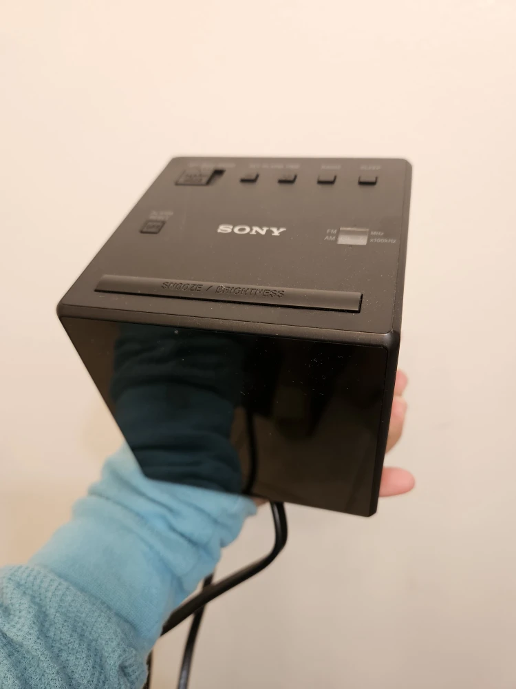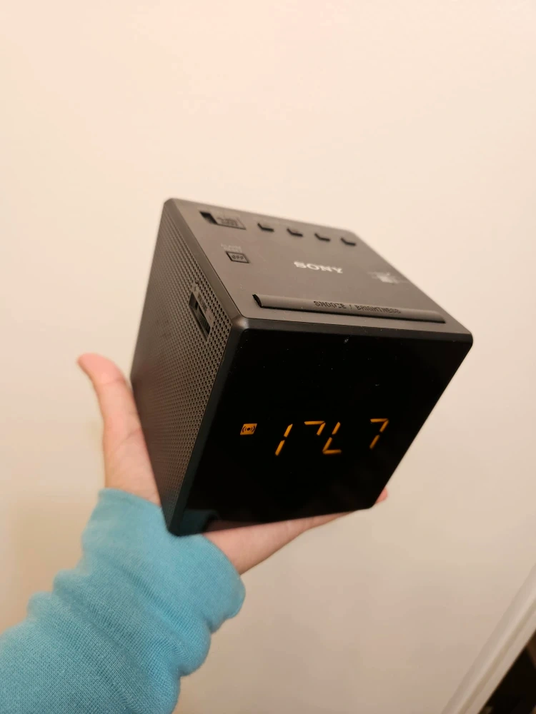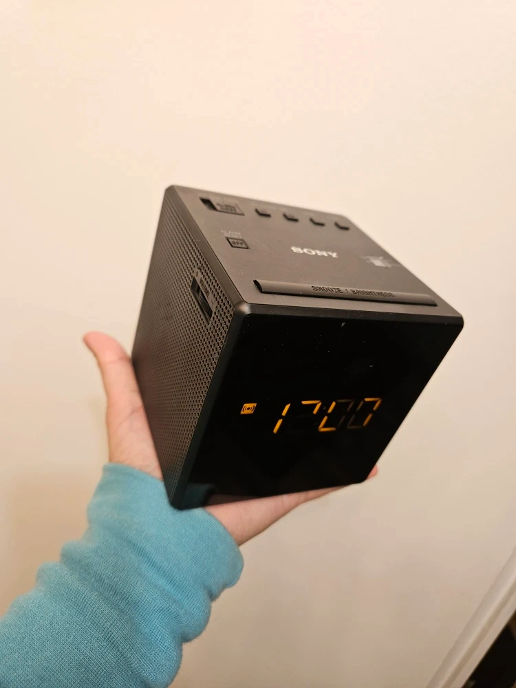 Selling a Sony ICFC1 clock radio in black. It's in good working condition and has a clear digital display. Perfect for your bedside table!