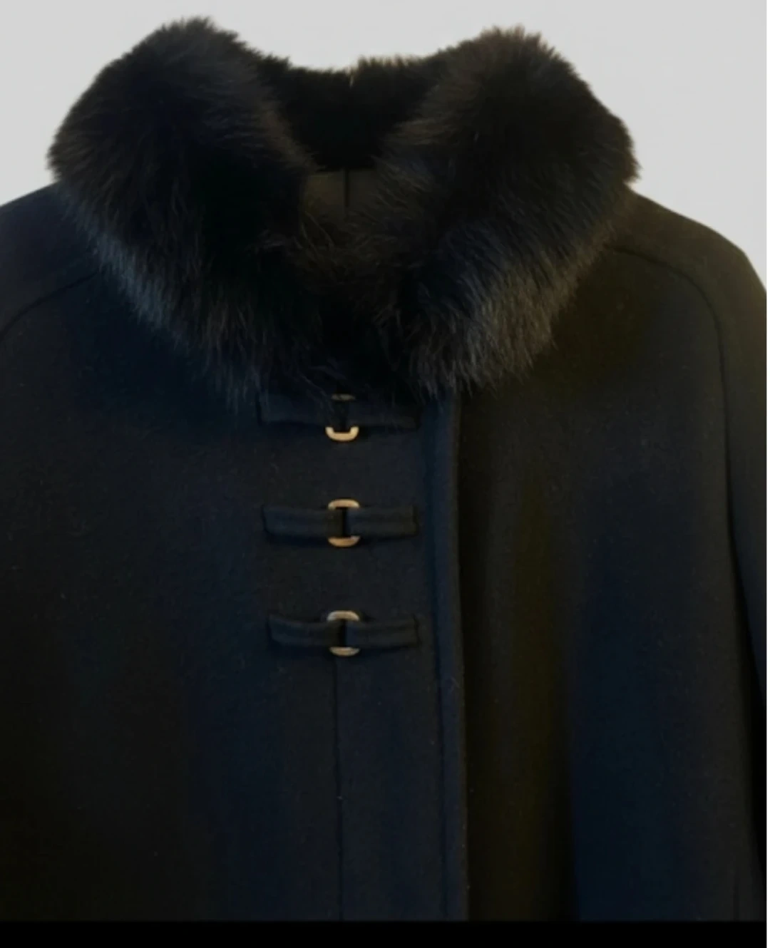 Luxurious, plush faux fur collar and unique three-strap toggle button closures for a secure, stylish fit.