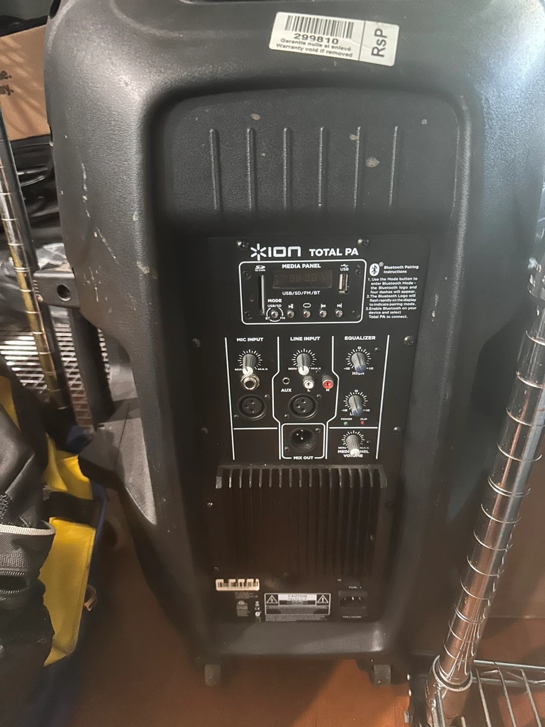 Selling an ION Total PA speaker. It's in good condition and ready to use for your next event or gathering! It has various input options including USB/SD/FM/BT.