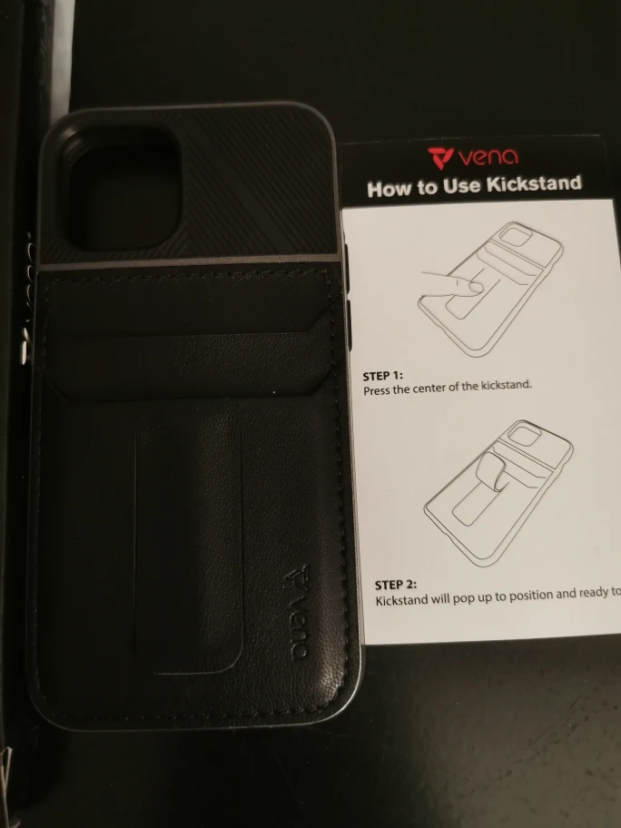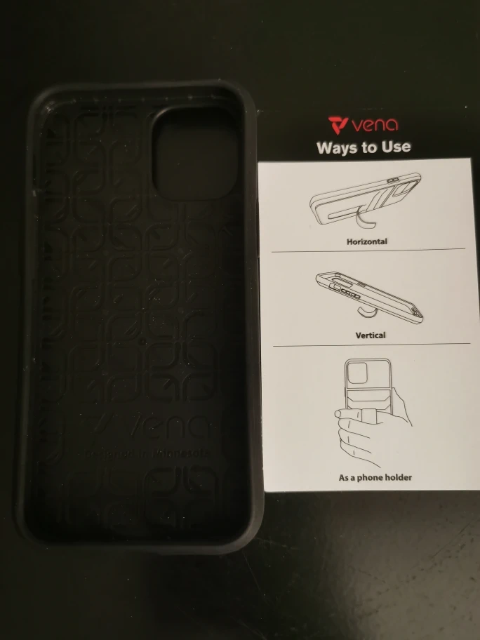 Selling a Vena Legacy phone case for the iPhone 12 Mini. It's in space grey and comes with a kickstand for horizontal and vertical use, and can also be used as a phone holder.