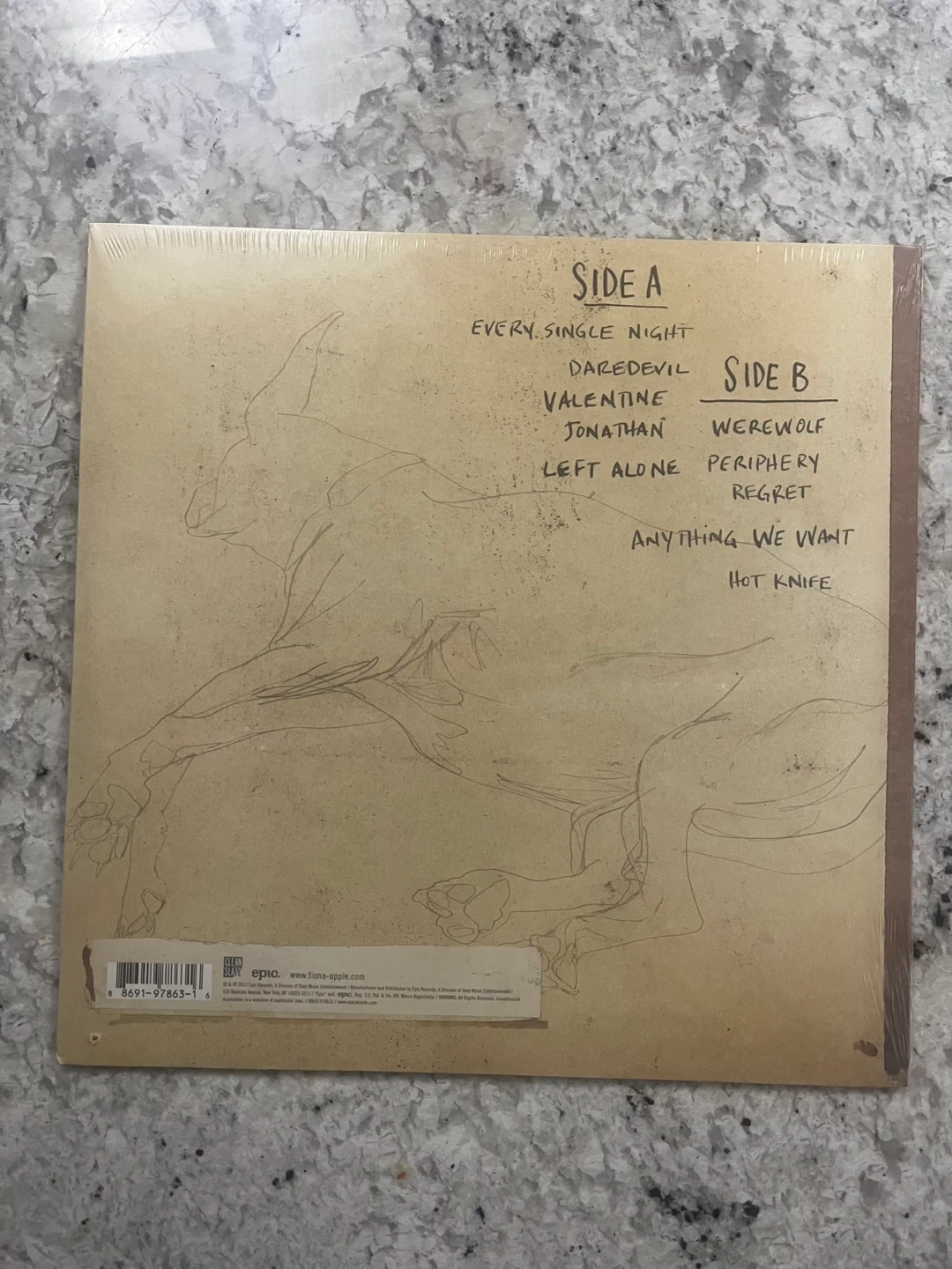 Selling a Fiona Apple vinyl album, "The Idler Wheel Is Wiser Than the Driver of the Screw and Whipping Cords Will Serve You More Than Ropes Will Ever Do". It features the songs "Every Single Night" and "Anything We Want" and includes a full album download card and heavy 180-gram vinyl