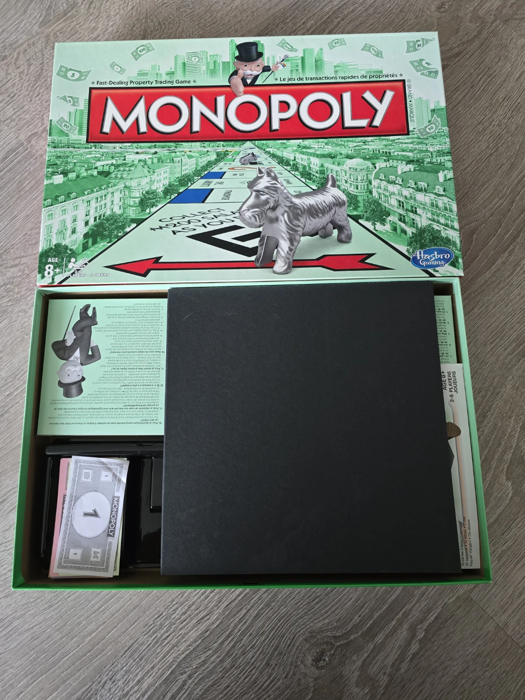 Selling a Monopoly board game by Hasbro Gaming! Enjoy fast-dealing property trading with this classic game. Suitable for ages 8 and up, and for 2-6 players.