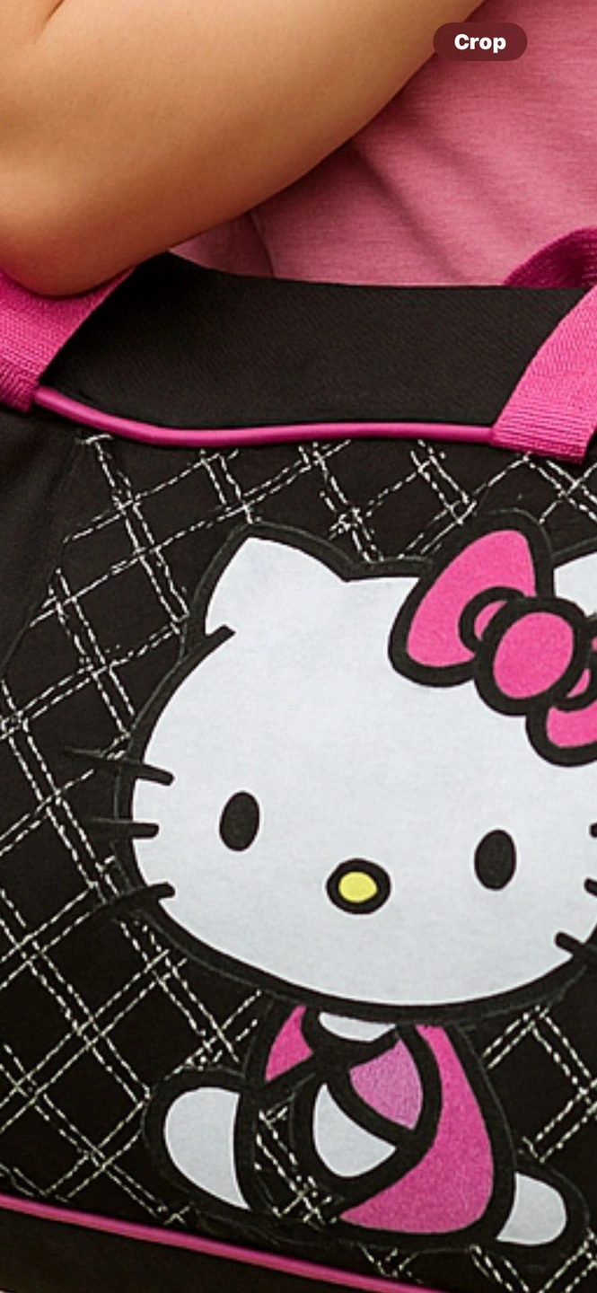 Super cute Hello Kitty duffel bag in black with pink trim and qu