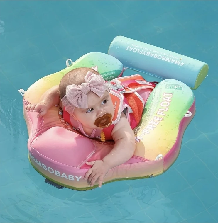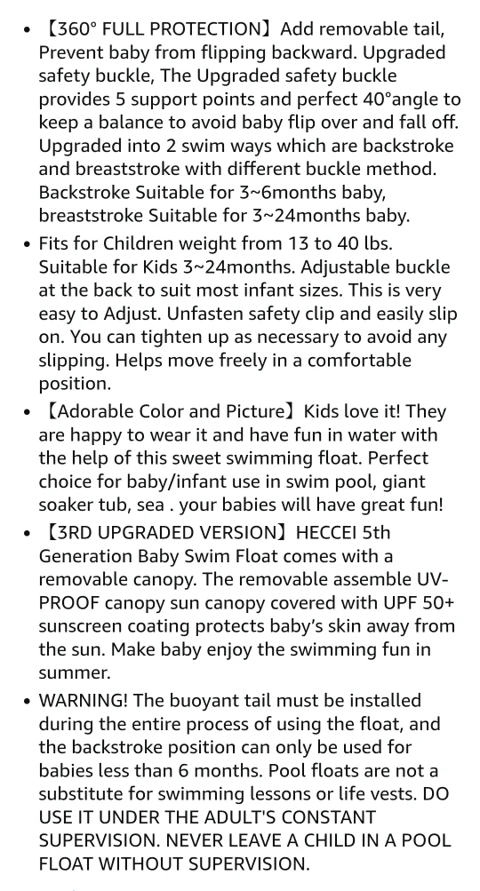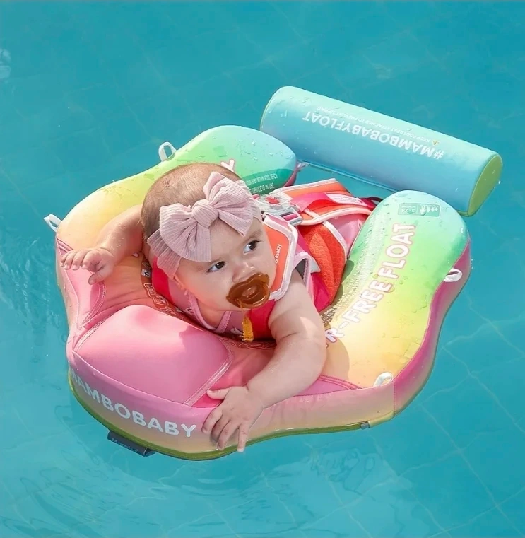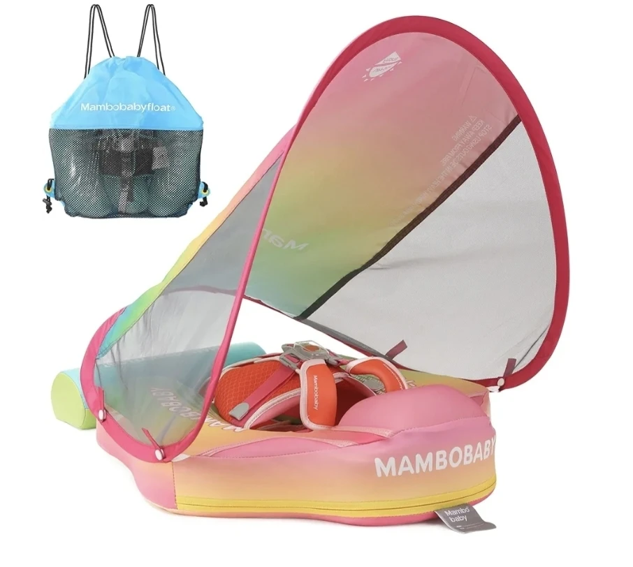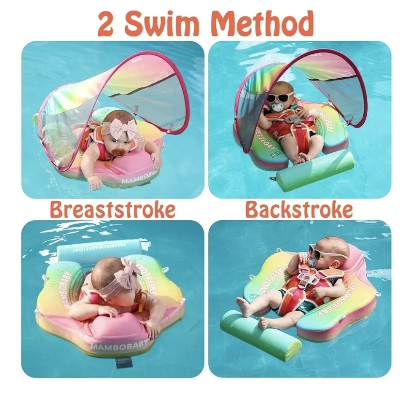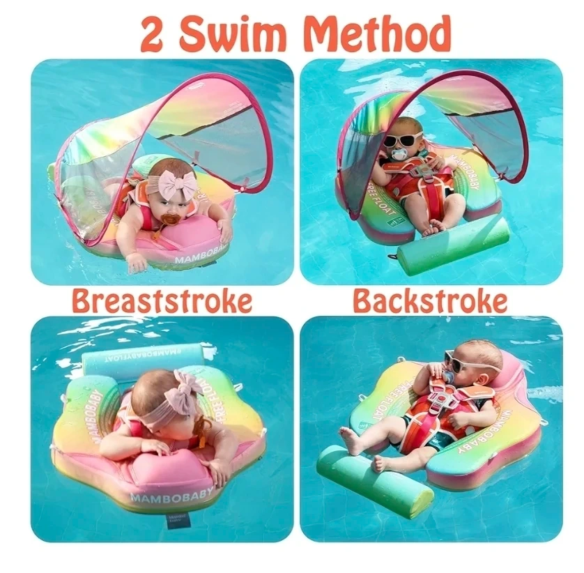 Baby Swim Float with Canopy, Non-Inflatable Solid Baby Float, Upgrade Soft Waterproof Skin-Friendly Leather Material Infant Swim Float for Boys and Girls Infant/Baby/Toddler