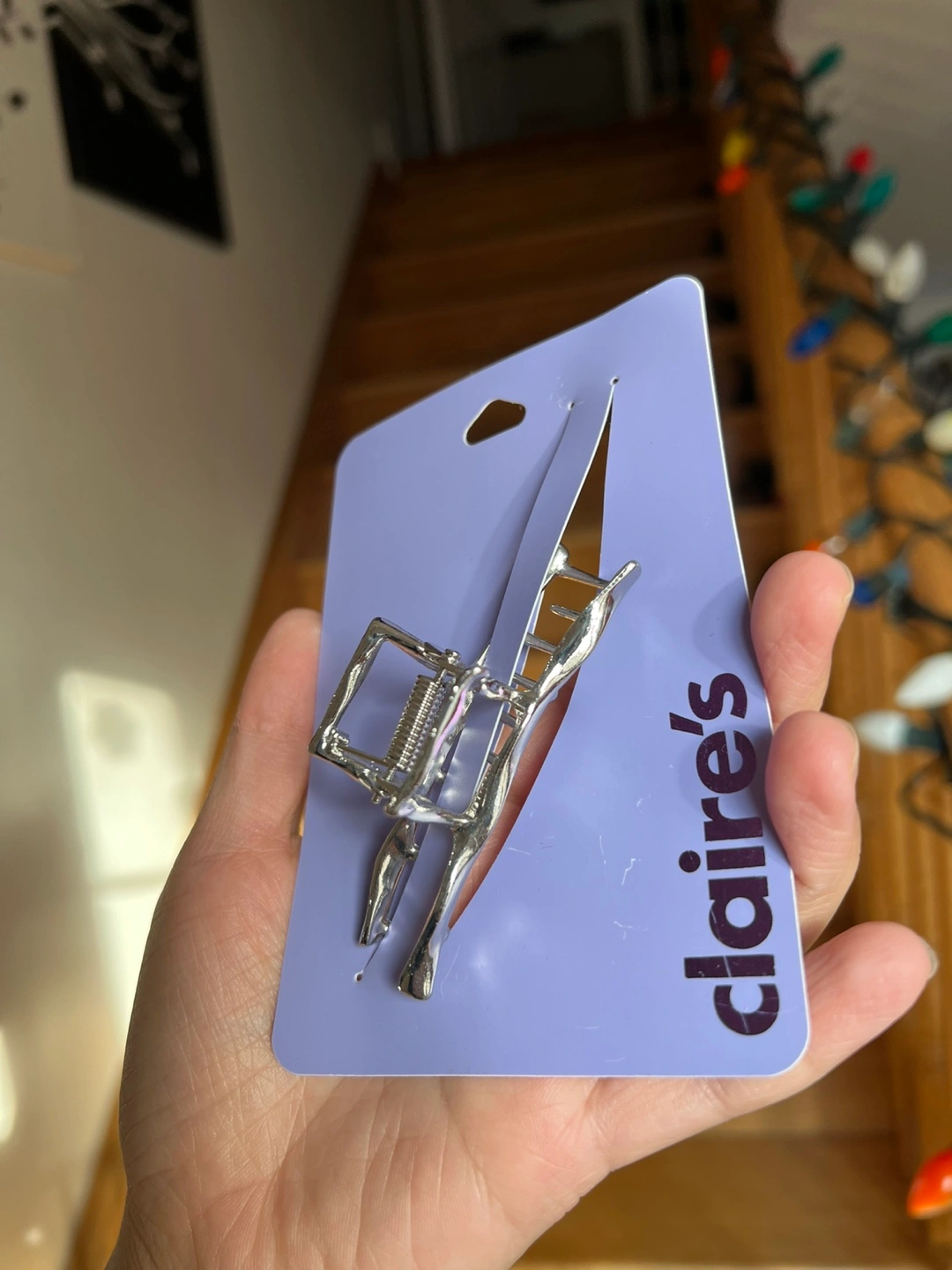 Selling a brand new silver hair claw clip from Claire's! It's a stylish and practical accessory to keep your hair in place.