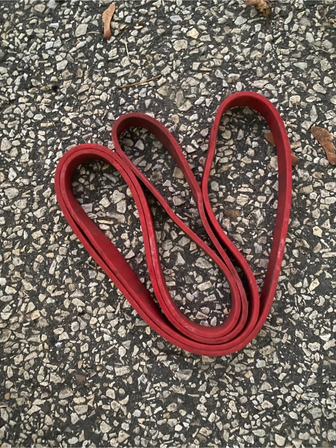 Selling a red resistance band. It's in good condition and ready for a new home! Great for at-home workouts or physical therapy