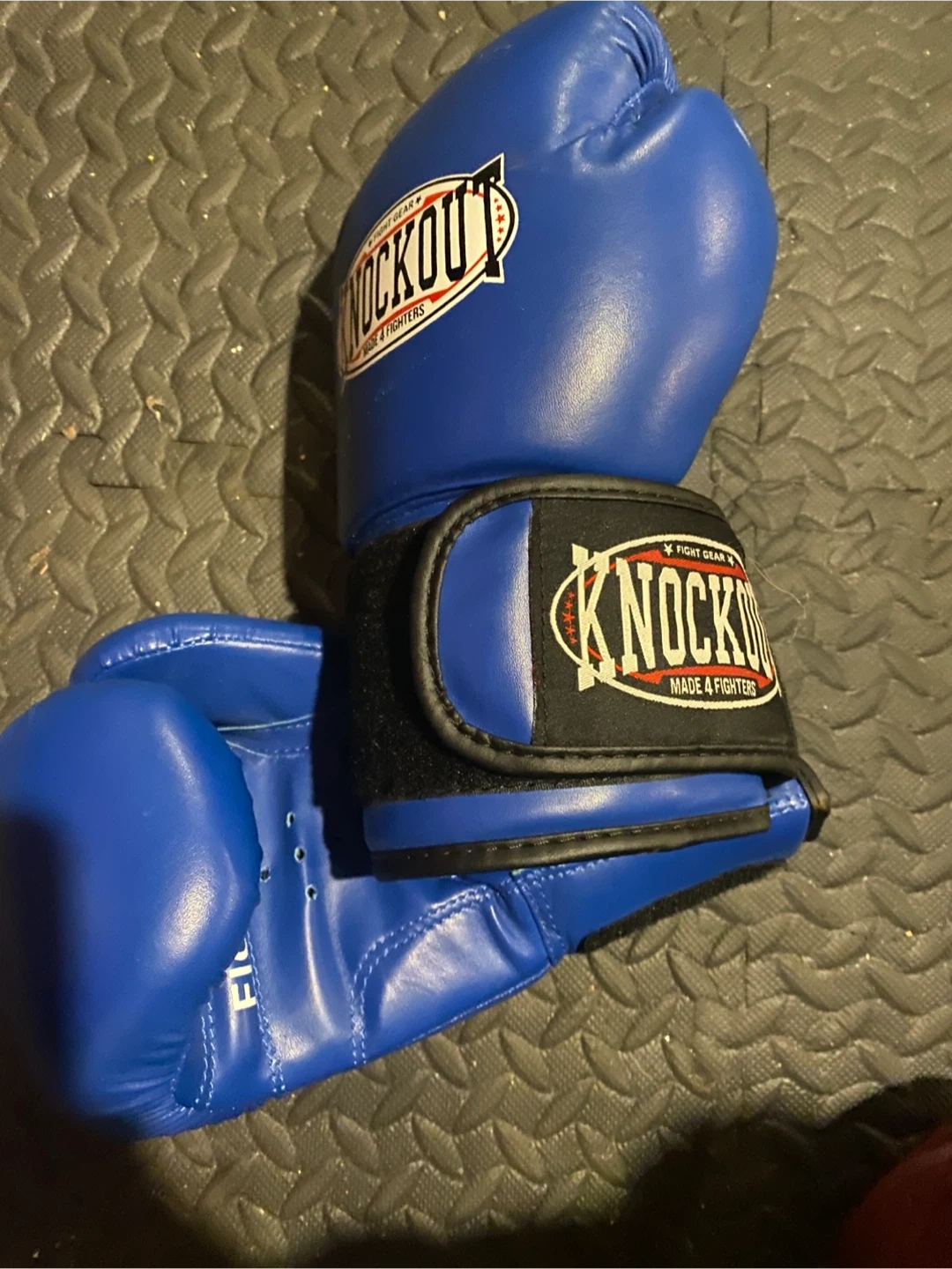 Selling a pair of Knockout boxing gloves in blue! They're in good condition and ready for your next sparring session or workout. Made 4 Fighters