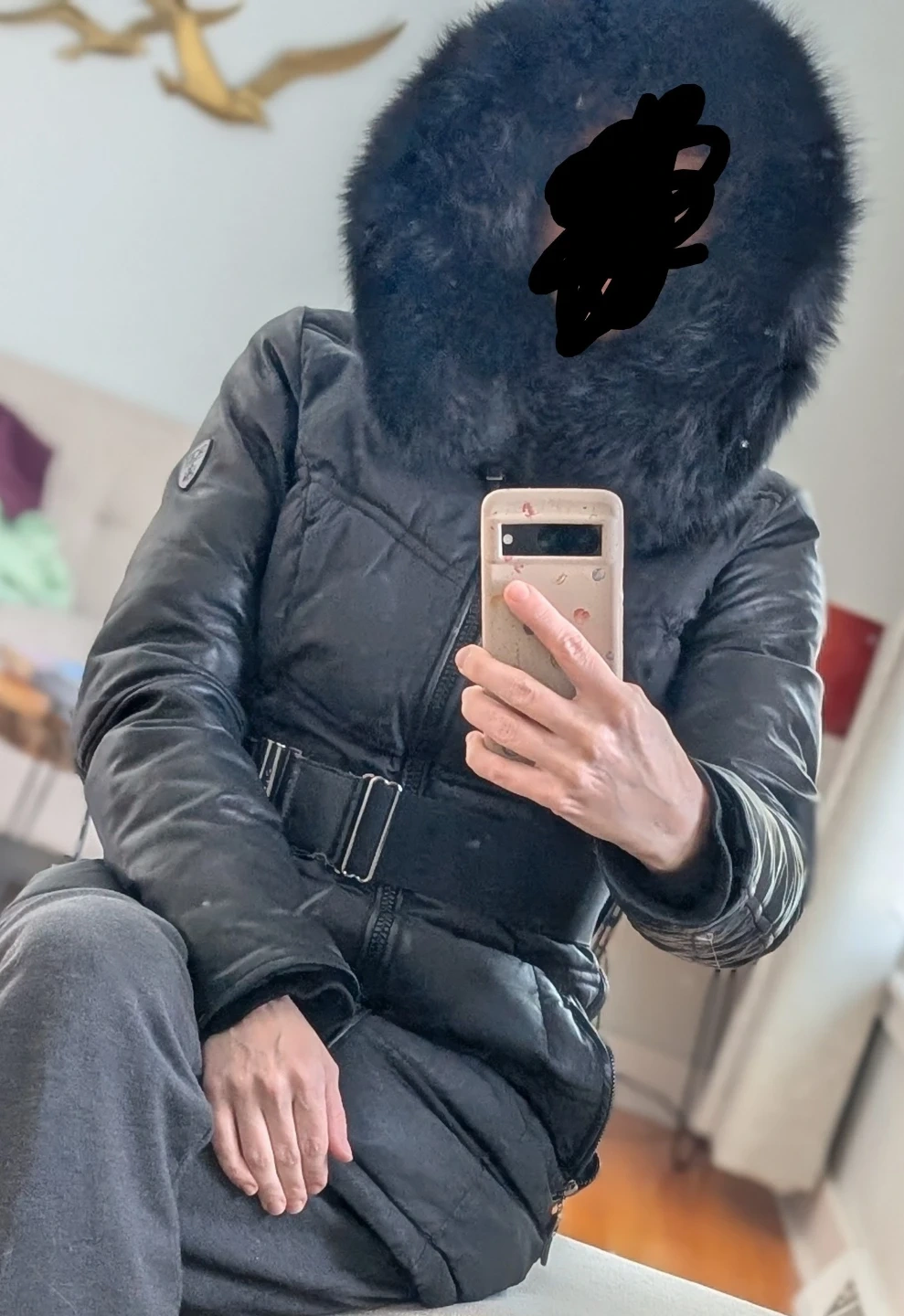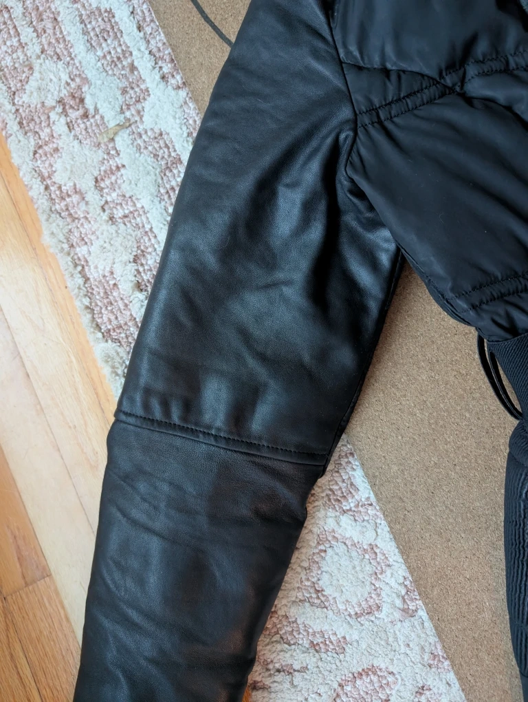 Bought at Winners 4 or 5 years ago for $450. Real leather, real fox fur (not attached in photos). Used, but still in good shape. Extremely warm. You couldn't find a warmer winter coat! It's a medium, but would also fit a small I think. Pick up only in Windsor Park.