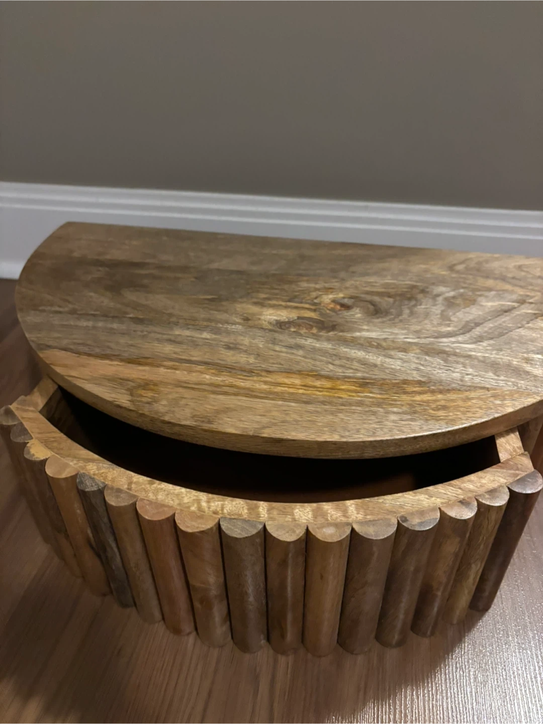Selling a lovely wall shelf made of solid mango wood with a ribbed texture