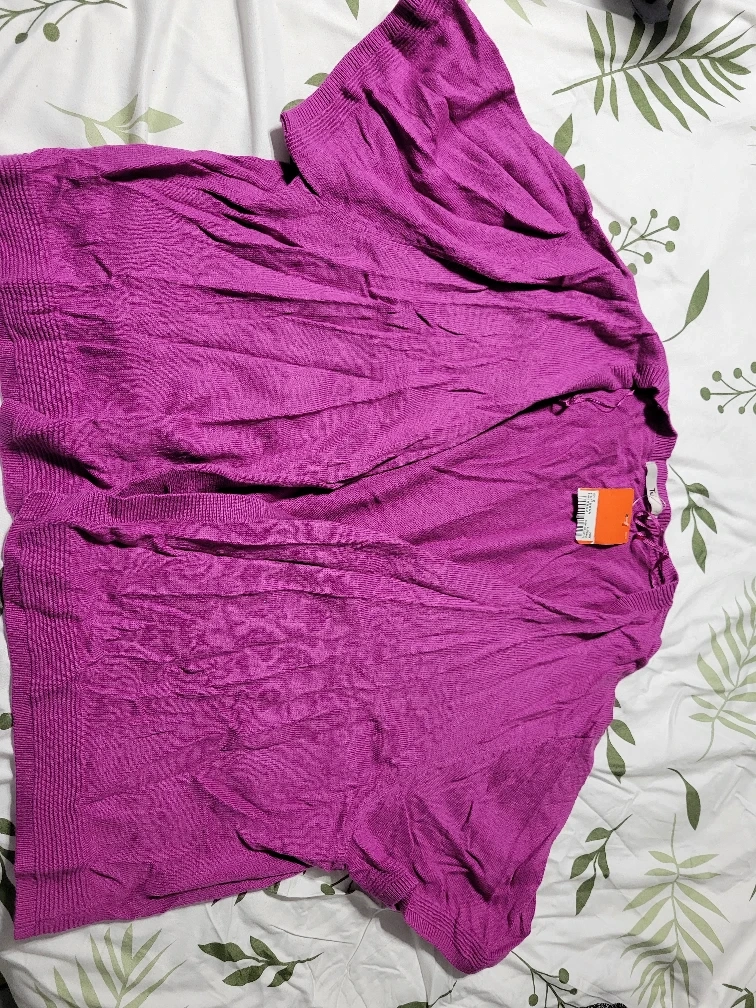 Here's a lovely purple cardigan from Joe Fresh! It's a size large and would be a great addition to your wardrobe for layering or just adding a pop of colour