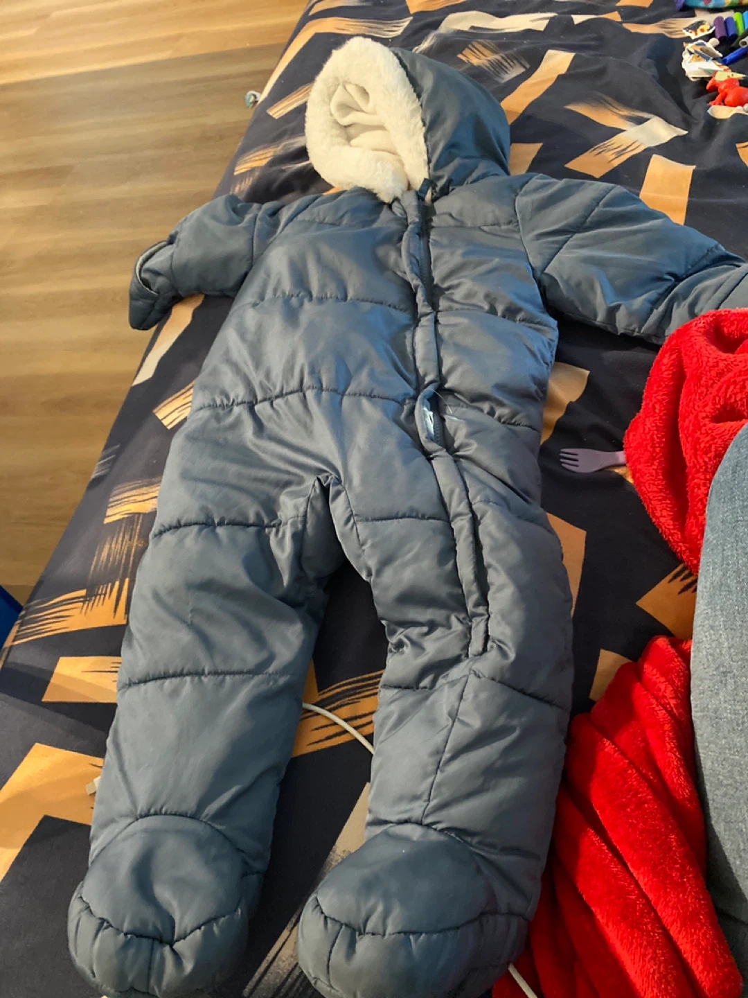 A cozy blue snowsuit for your little one! It looks like it's in great condition and ready to keep your baby warm this winter. 18-24 month