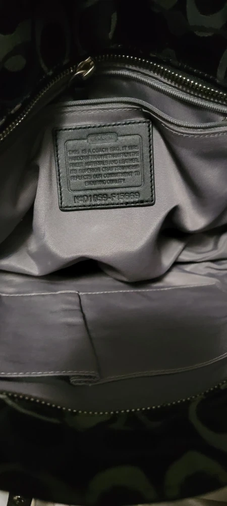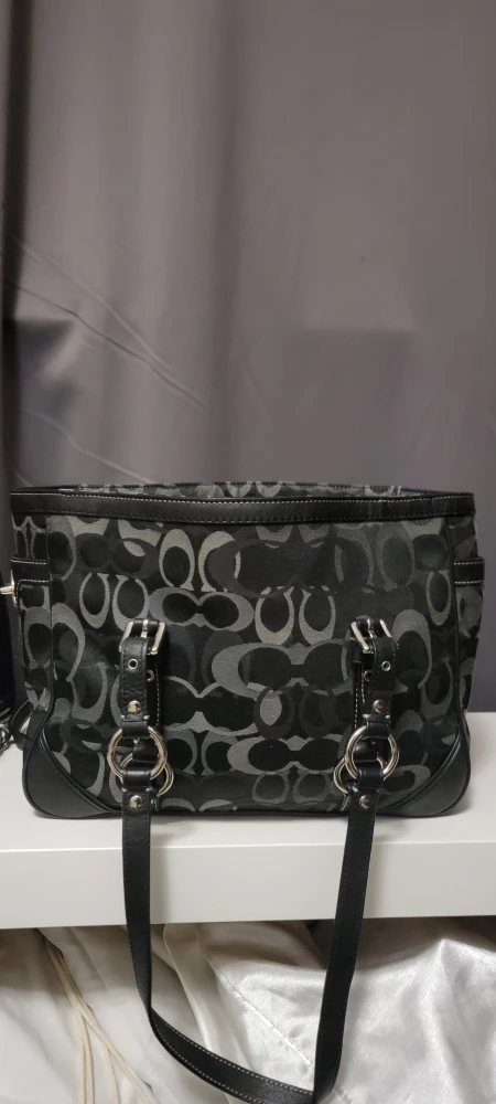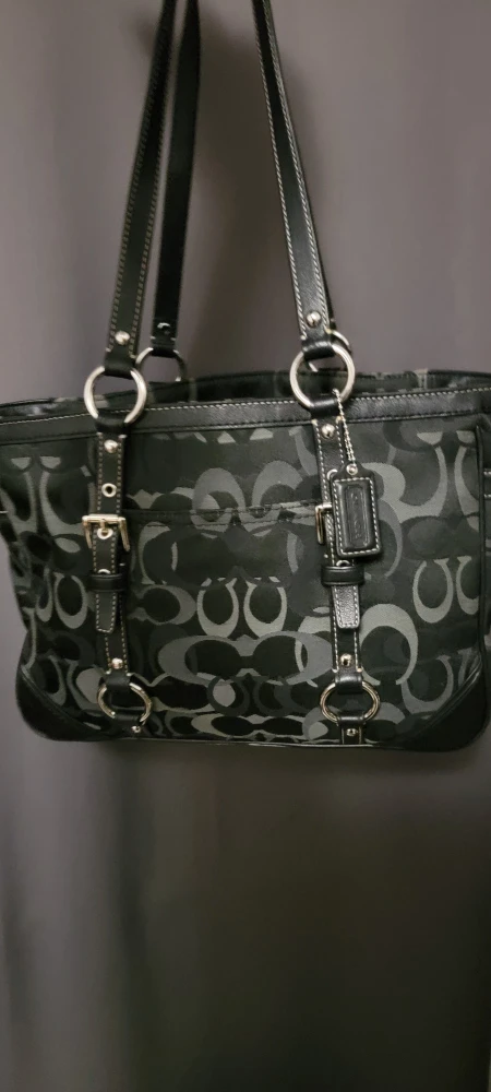Selling a Coach tote bag with a black and grey signature print! The bag is in great condition and has a classic design. The interior is spacious, perfect for everyday essentials. The model number is N-D1059-F15669