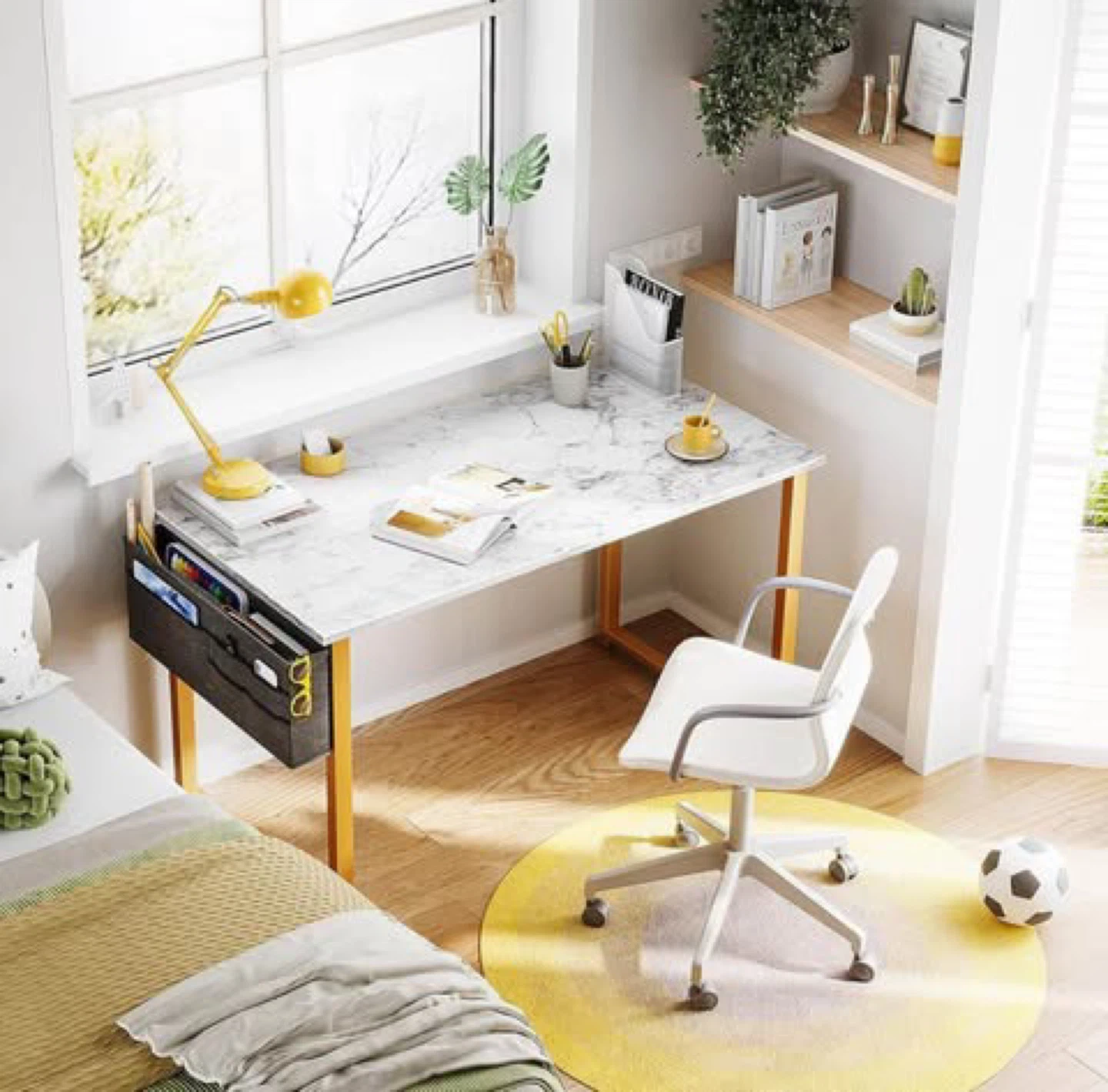 Upgrade your home office or study nook with this sleek, modern 40β white marble-look desk with gold legs β stylish, compact, and super functional. Perfect for condos, bedrooms, or minimalist workspaces.