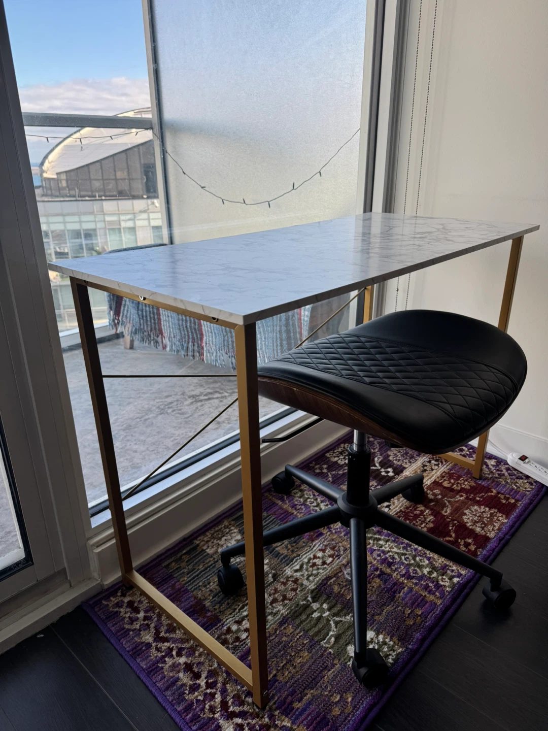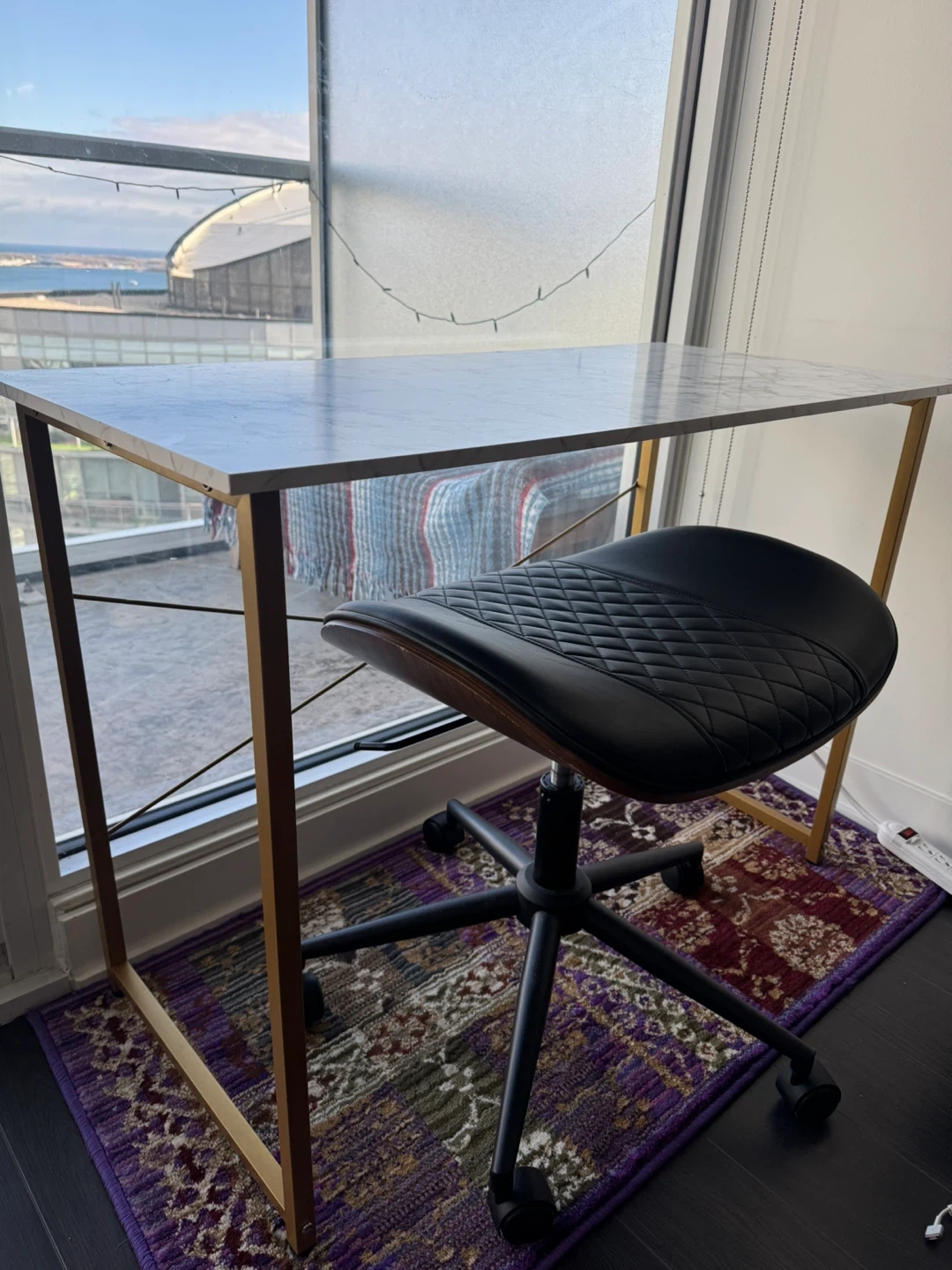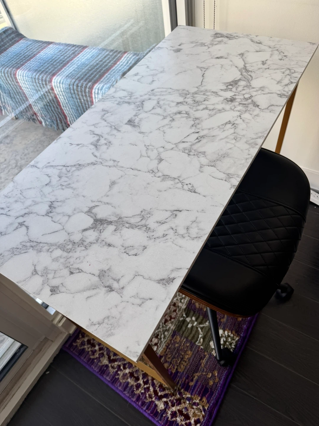 β¨ Compact Marble + Gold Desk β Perfect for Small Spaces β FREE Leather Office Chair Included! β¨