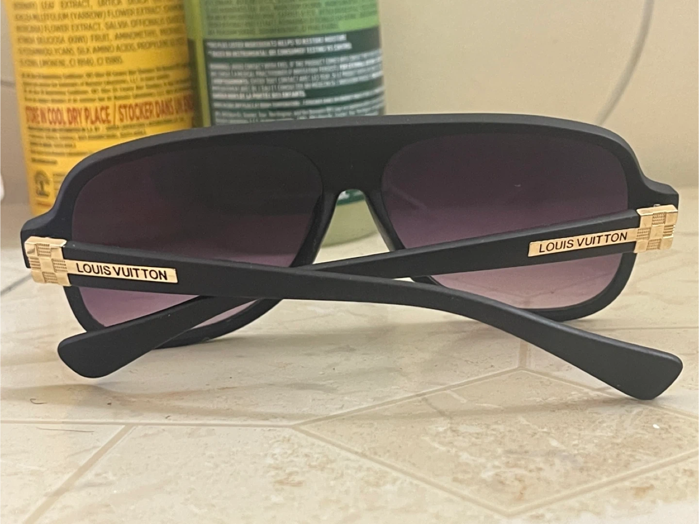 Selling a pair of Louis Vuitton sunglasses. They feature the iconic LV logo on the frame. Perfect for adding a touch of luxury to your look!