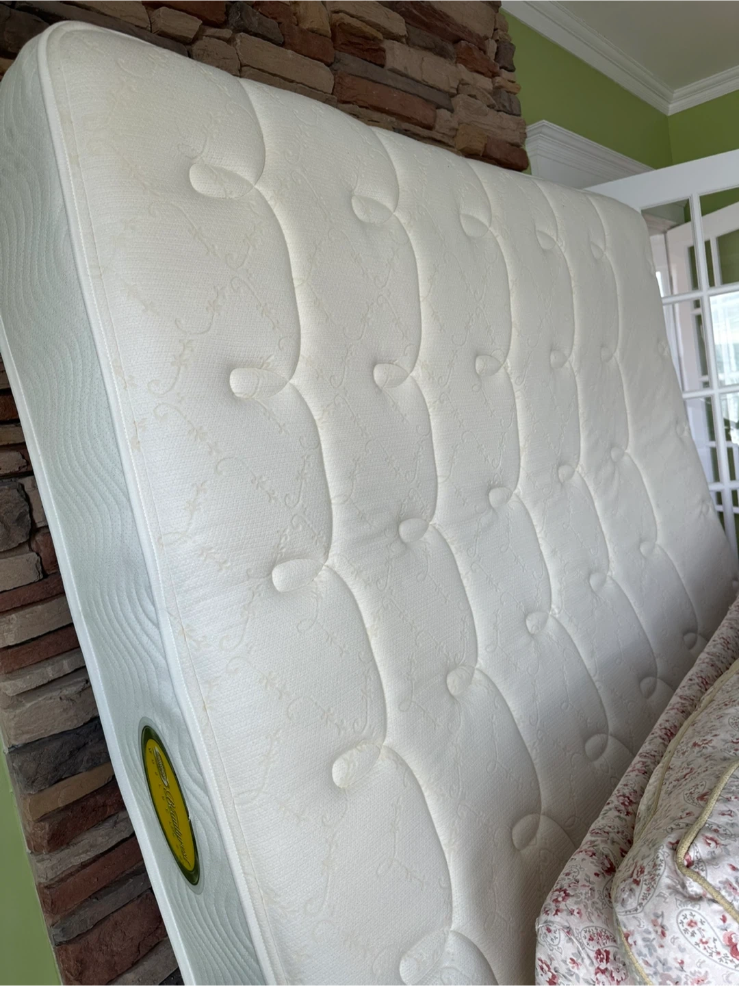 Selling a King size Simmons Beautyrest World Class mattress. It's in good condition and ready for a new home! The mattress has a comfortable feel and is perfect for a good night's sleep. Temperpedic mattress topper included.