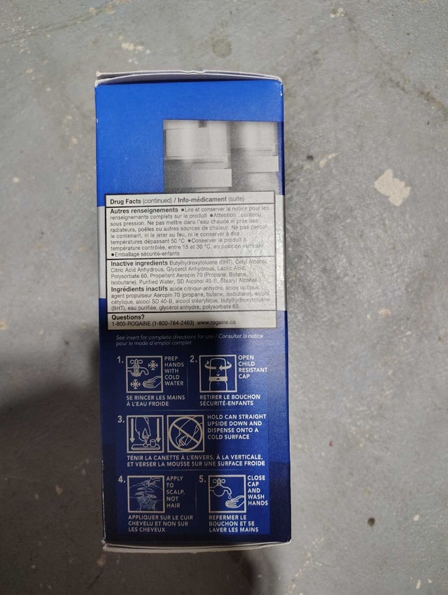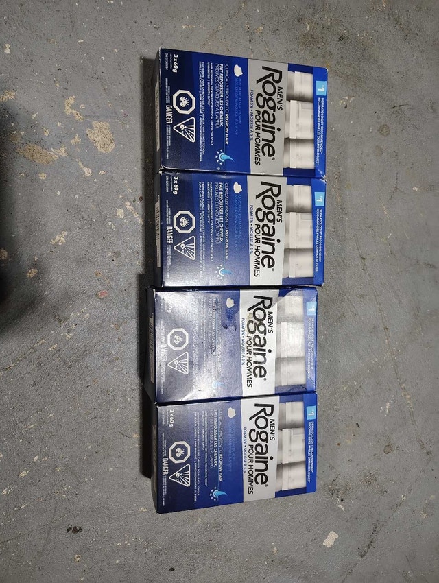 Expiry 2027/03, 2027/01, 2027/05, 2027/03 $100 each: https://www.walmart.ca/en/ip/Rogaine-Men-s-Hair-Loss-Thinning-Treatment-for-Hair-Regrowth-5-Minoxidil-Foam-Extra-Strength-3-Month-Treatment-white/0RZ1Q8EXQXH2?classType=REGULAR&athbdg=L1600 got 2 boxes left