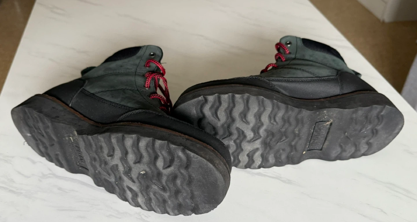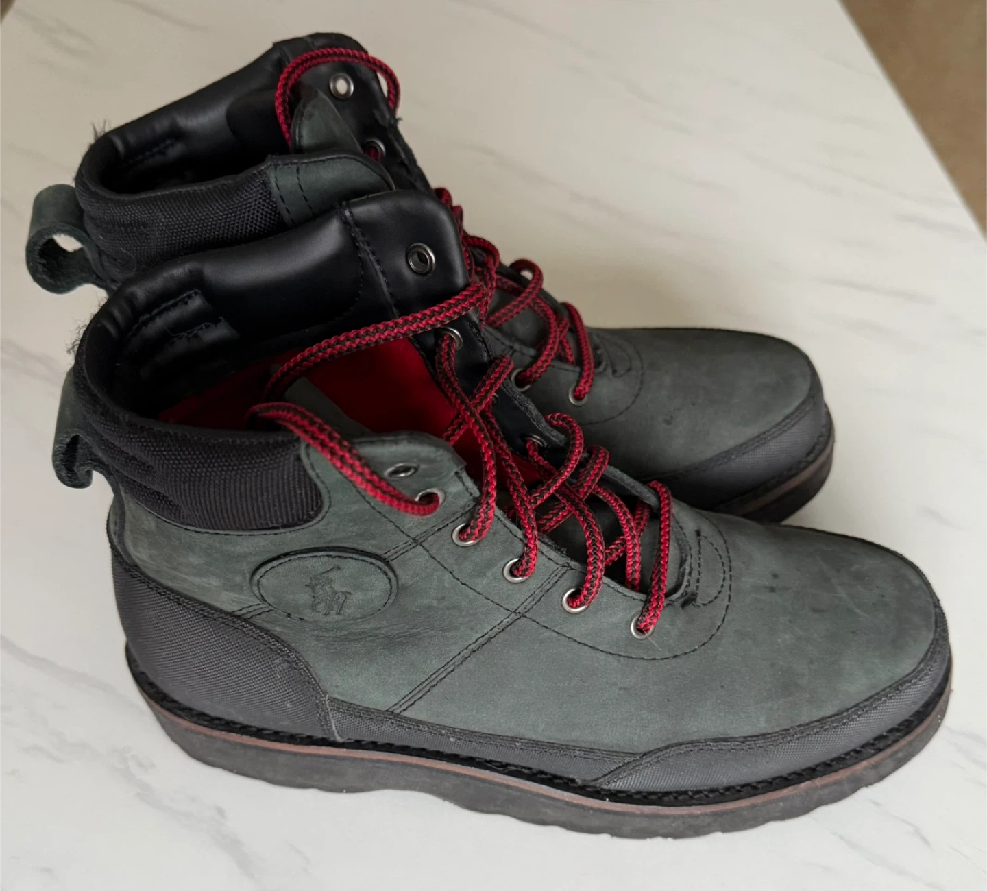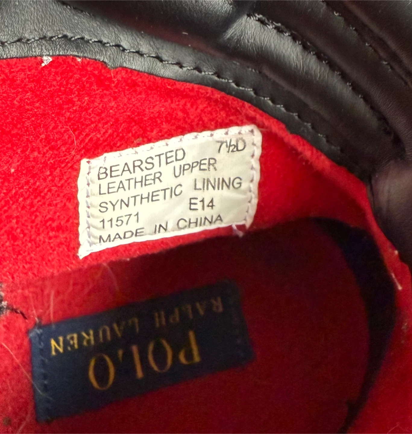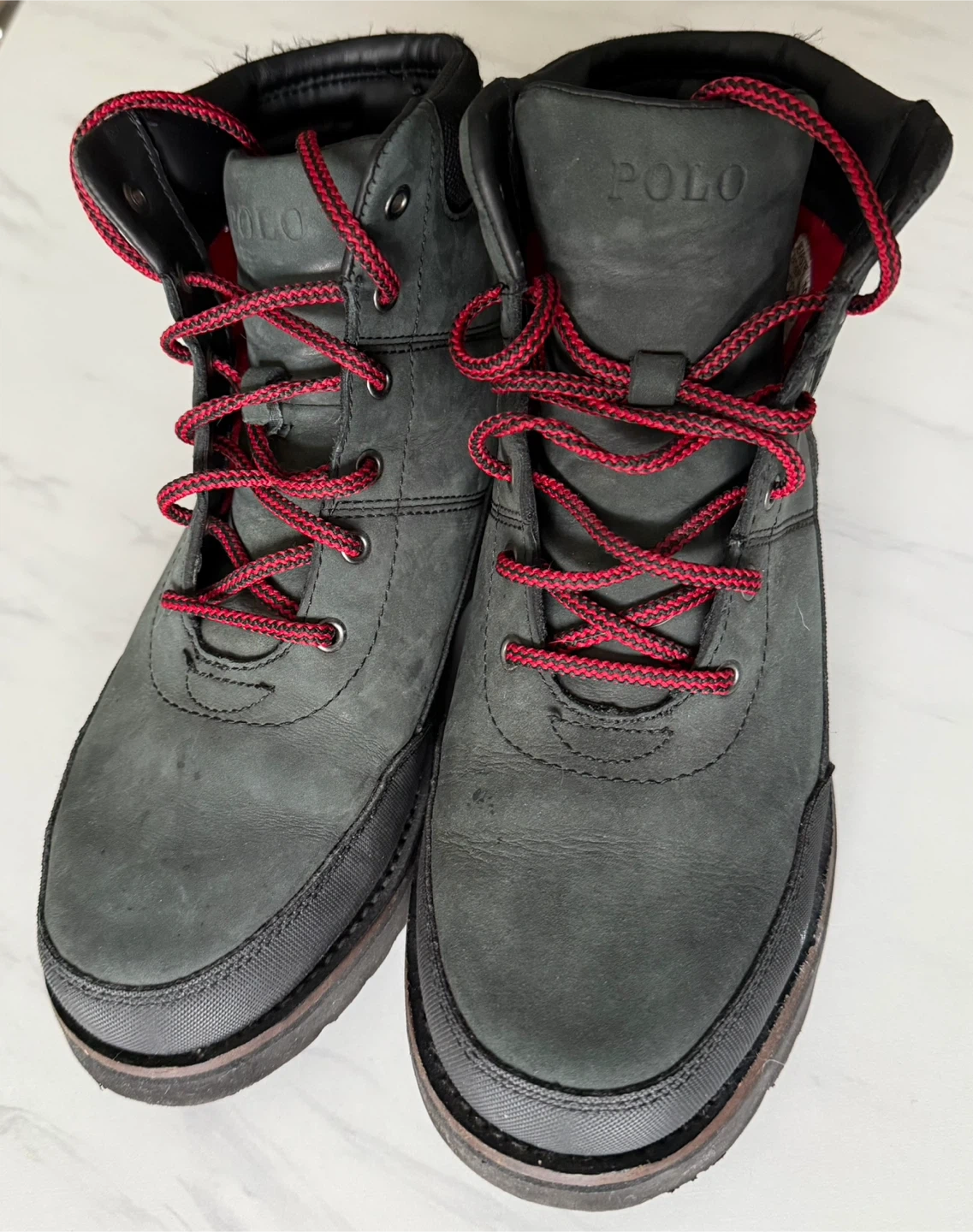 Selling a pair of Polo Ralph Lauren Bearsted boots in size 7.5. They have a leather upper and synthetic lining. The boots are in good condition and have red laces.
