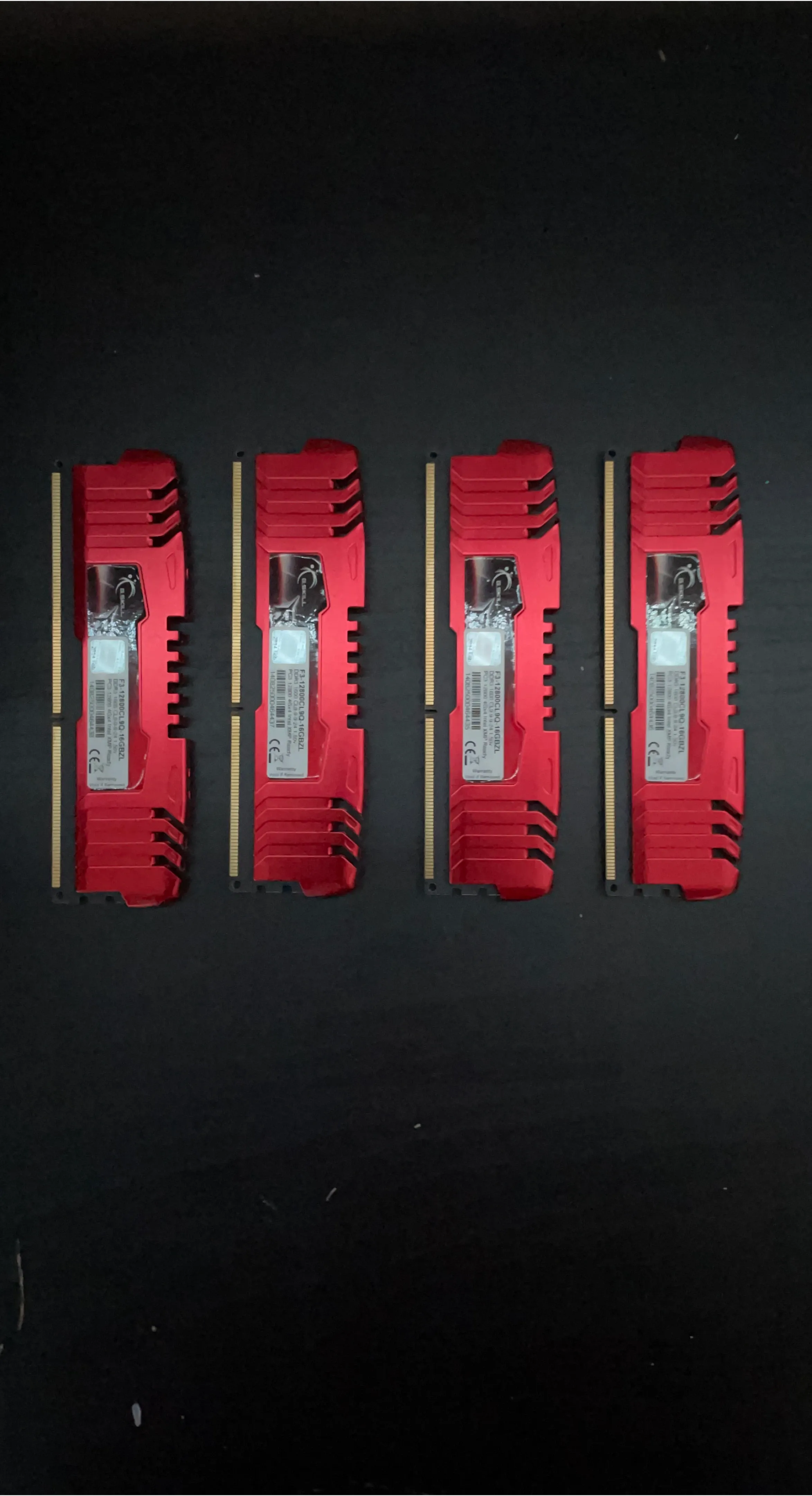 Selling a set of G.Skill 16GB DDR3 RAM (4 sticks of 4GB each). These are model F3-12800CL9Q-16GBZL. They're DDR3 1600, CL9-9-9-24, and 1.50V. Perfect for upgrading your older PC!