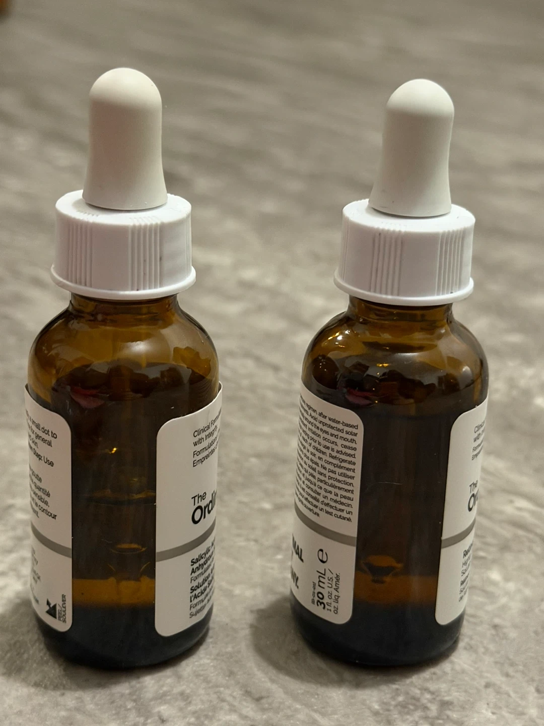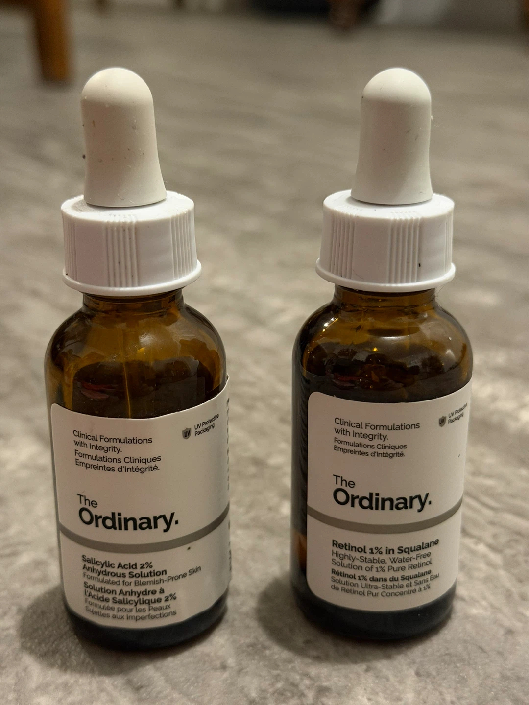 Selling two bottles from The Ordinary: one Salicylic Acid 2% Anhydrous Solution (50% full) and one Retinol 1% in Squalane (90% full). Just didn’t work out for my skin.