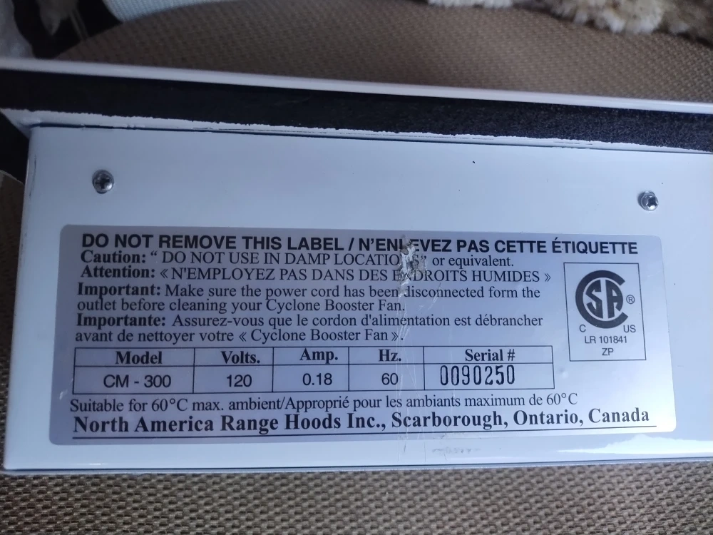 Selling a Cyclone Booster Fan for the floor register, model CM-300.