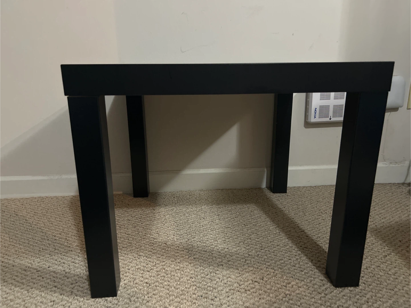 Giving away a black IKEA Lack side table. It's in great shape and ready for a new home. Perfect for small spaces or as a bedside table!