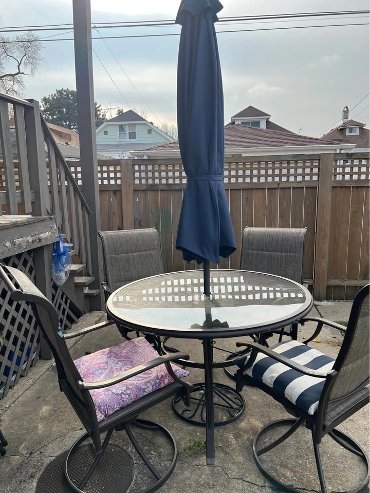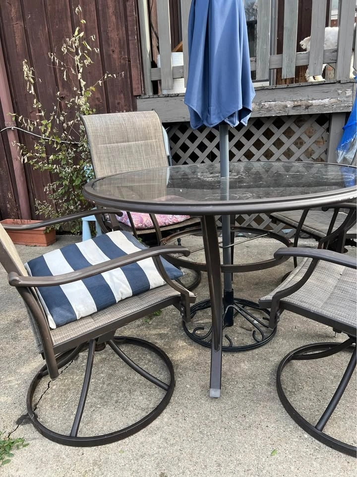 Price: $200 Retail: $500+ Selling a patio round table with 4 chairs. The set is used but in great condition — sturdy, clean, and perfect for any backyard or patio setup. Umbrella & stand NOT included in the $200 price. If you’d like them, you can add the umbrella and stand for an additional $50. The umbrella is new, purchased this year. Great deal for anyone wanting to upgrade their outdoor space! P Pickup only.
