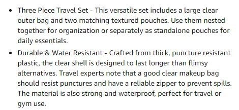 New~Toiletry Bag Set, Wp, TSA Compliant(3 PCS)
