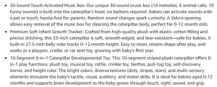 NEW~Caterpillar Sensory Toy 33in Music Box 30 Snds