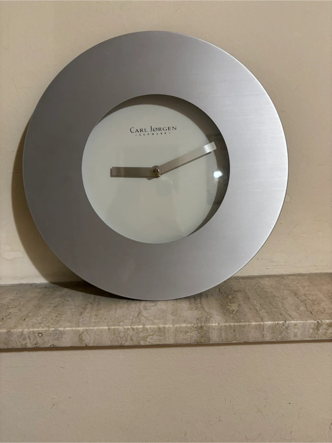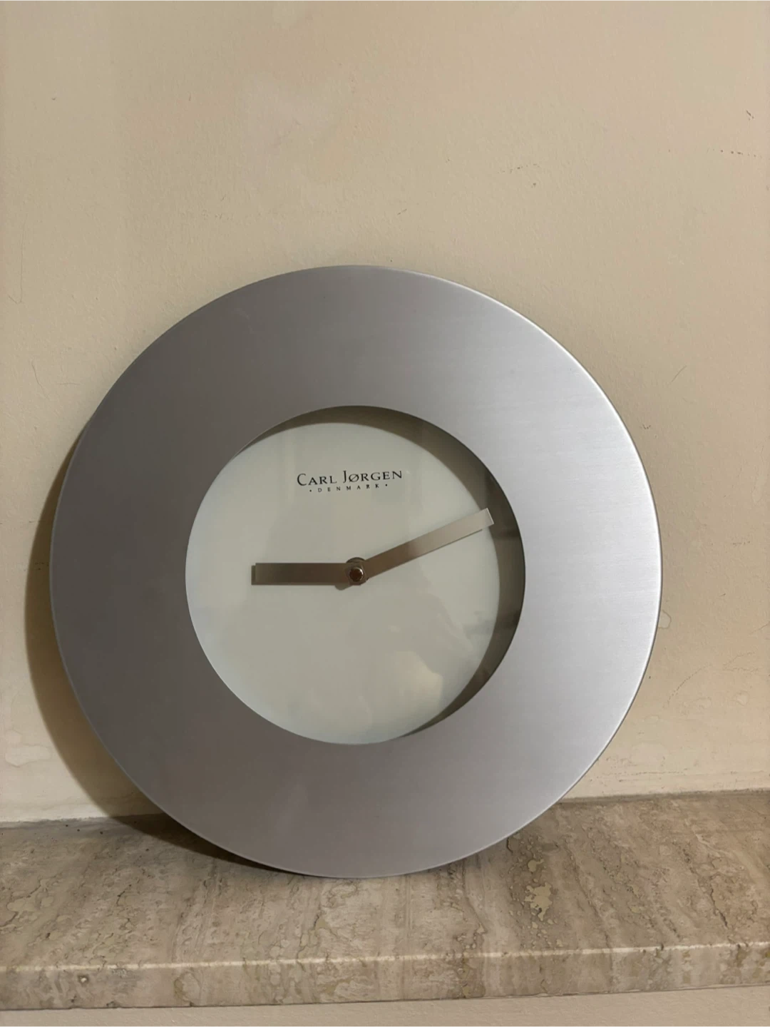 Selling a stylish Carl Jorgen Denmark wall clock! The clock features a sleek silver frame and a minimalist design that would look great in any room. It's in great condition and ready to add a touch of Scandinavian design to your home