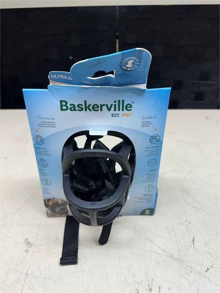 BASKERVILLE ULTRA MUZZLE - Patented Humane Design, Breathable, Dog can Pant and Drink, Adjustable, Padded, Dog Training Muzzle for Large Dogs, Prevents Biting, Wildlife Scavenging (Size 5, Black)