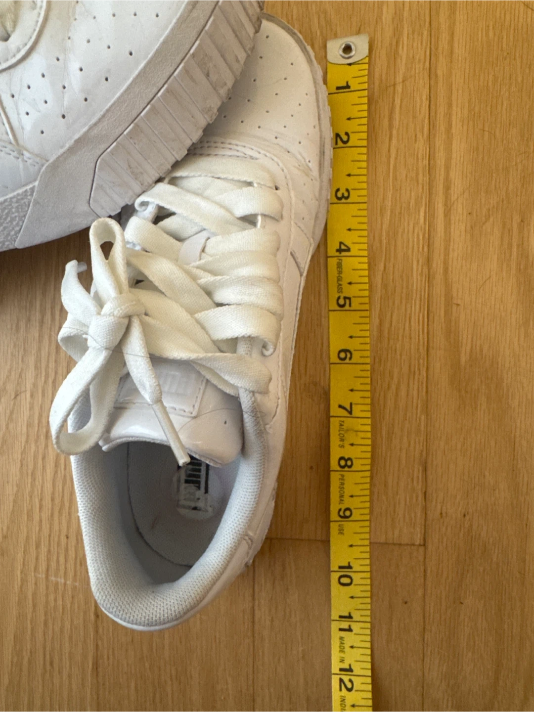 Selling a pair of Puma Calai Remi sneakers in women's size 7. It’s used 3-4 times and been in closet. Thought white suits me but ended up not liking it .