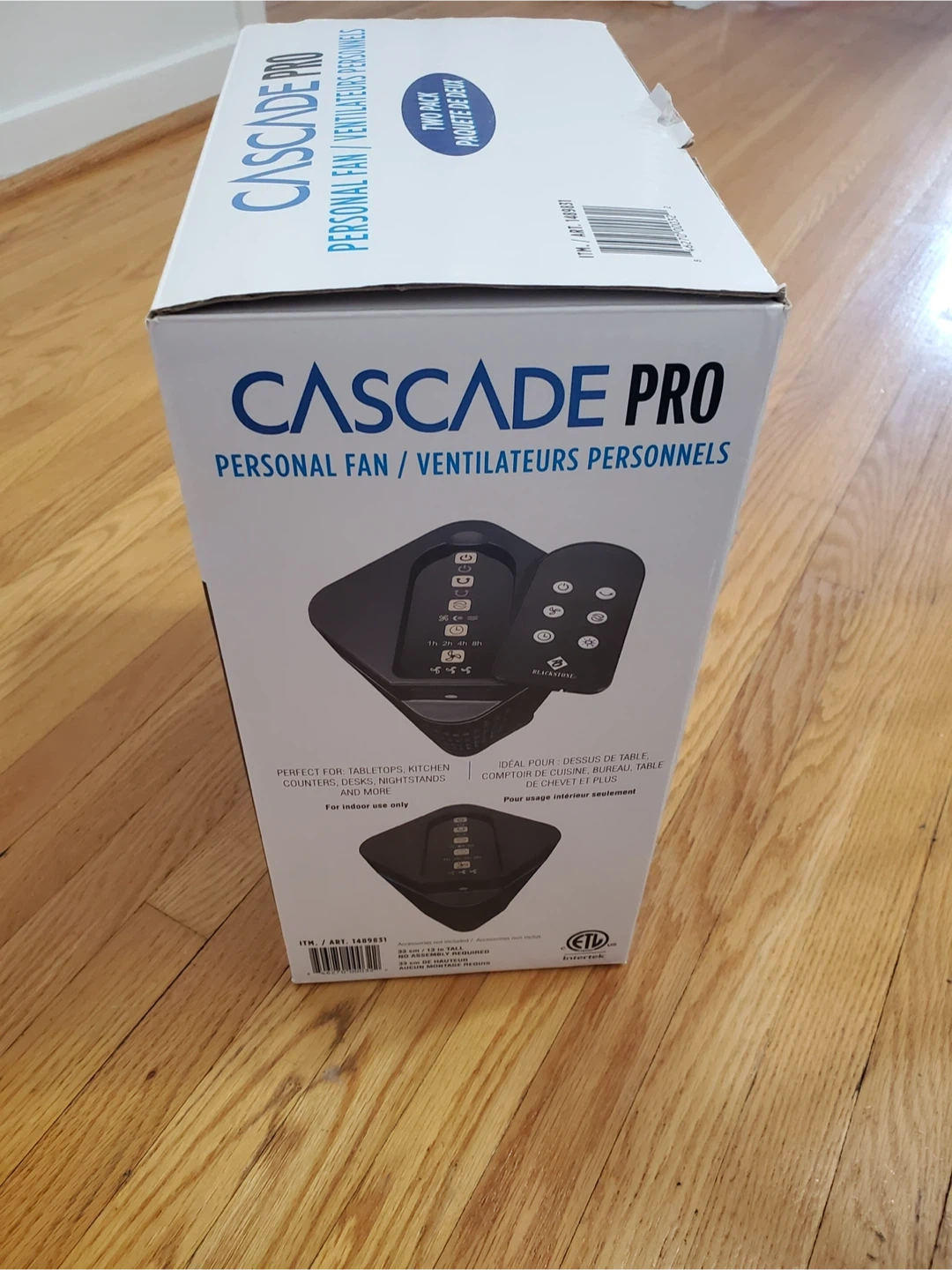 Selling one brand new Cascade Pro personal fans! They are perfect for tabletops, kitchen counters, desks, and nightstands. They feature 3 speeds, a 15-hour timer, and ultra-quiet oscillation. Box included