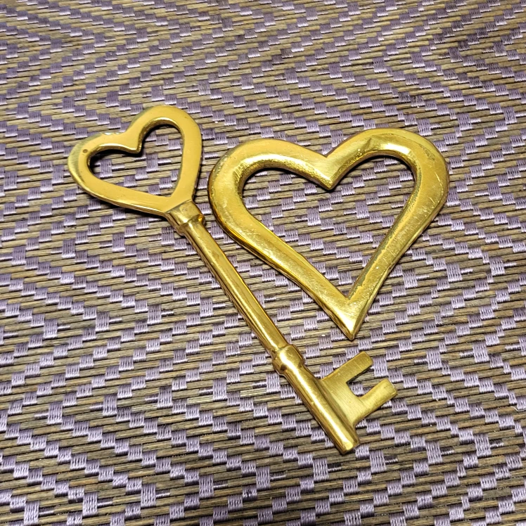 Selling a cute decorative gold-coloured heart key and matching heart ornament. Perfect for adding a touch of charm to any room!