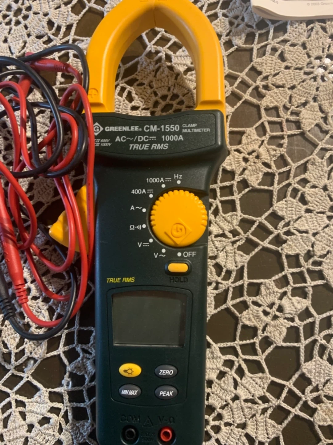 This Greenlee CM-1550 digital clamp meter is perfect for any electrician needing to measure AC/DC voltage and current up to 1000A. This used multimeter comes with its original carrying case and manual, making it easy to keep everything organized and protected. Its True RMS readings ensure accuracy, while the clamp design allows for non-contact measurements.