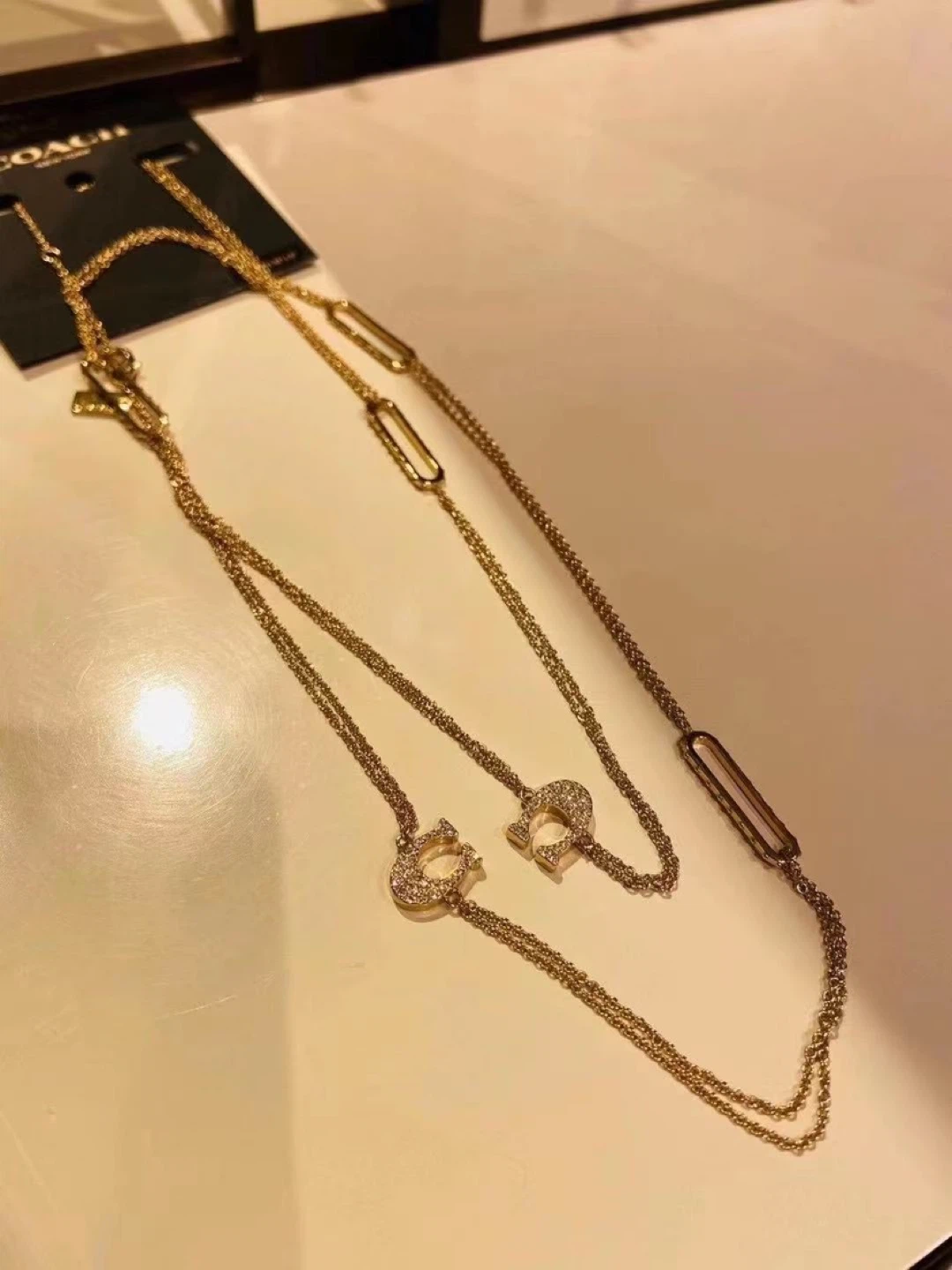 Selling a Coach gold necklace. It's in great condition and features the iconic Coach 'C' logo with some sparkle