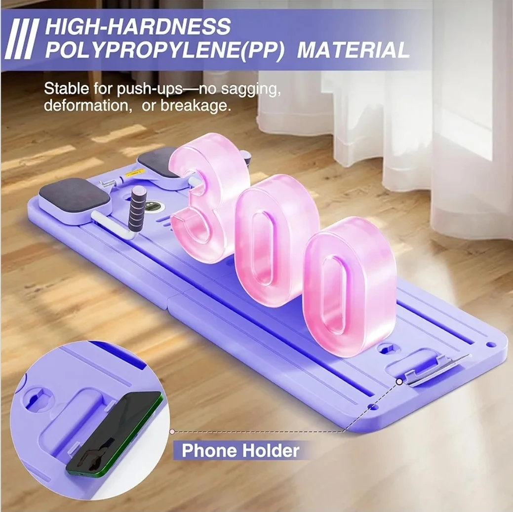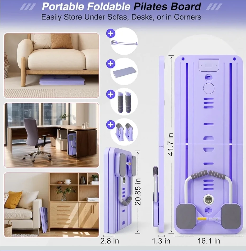 Selling a Weture Pilates Board in purple! It's a foldable and portable pilates reformer machine. Great for core and full-body workouts! Made with high-hardness polypropylene (PP) material, so it's stable for push-ups, with no sagging, deformation, or breakage. It also has a phone holder!