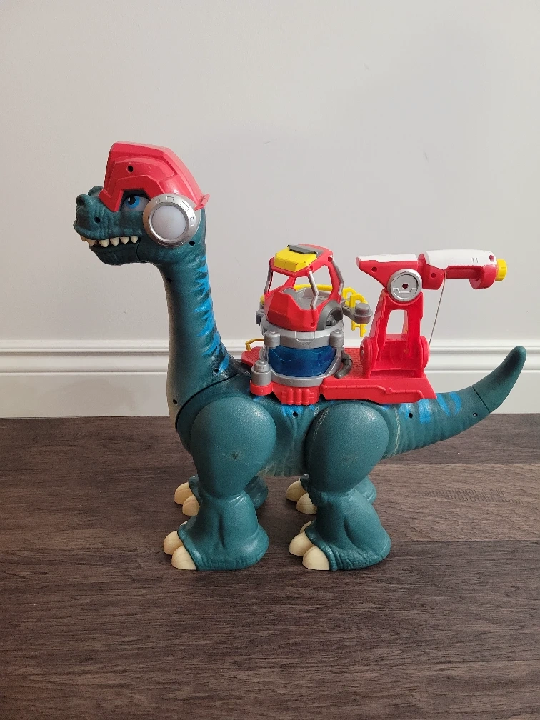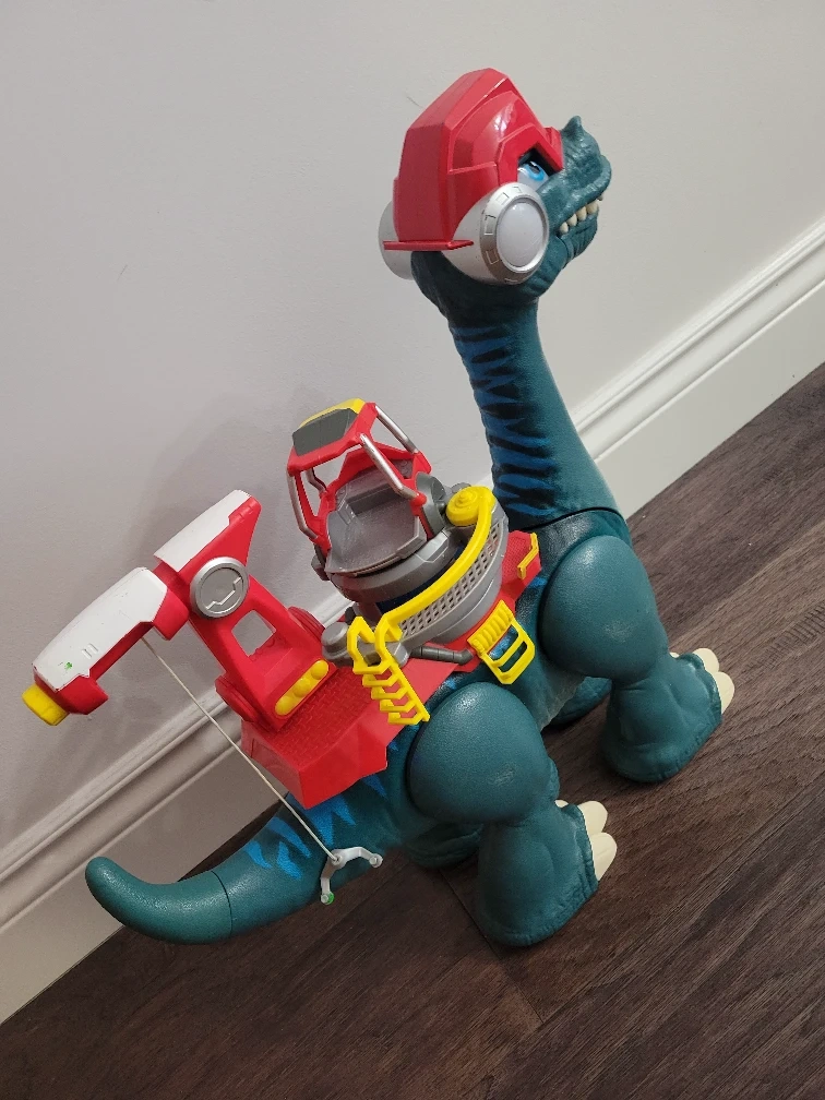 Selling a Dino-Riders Brontosaurus toy! It's in great shape and ready for a new home. This toy features a unique design with a red helmet and a mounted weapon system. Perfect for any dinosaur or vintage toy collector!