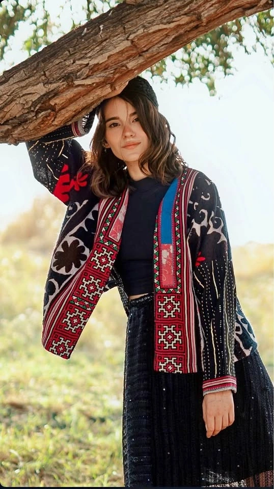 Stunning Persian designer coat featuring unique handcrafted vintage fabric.