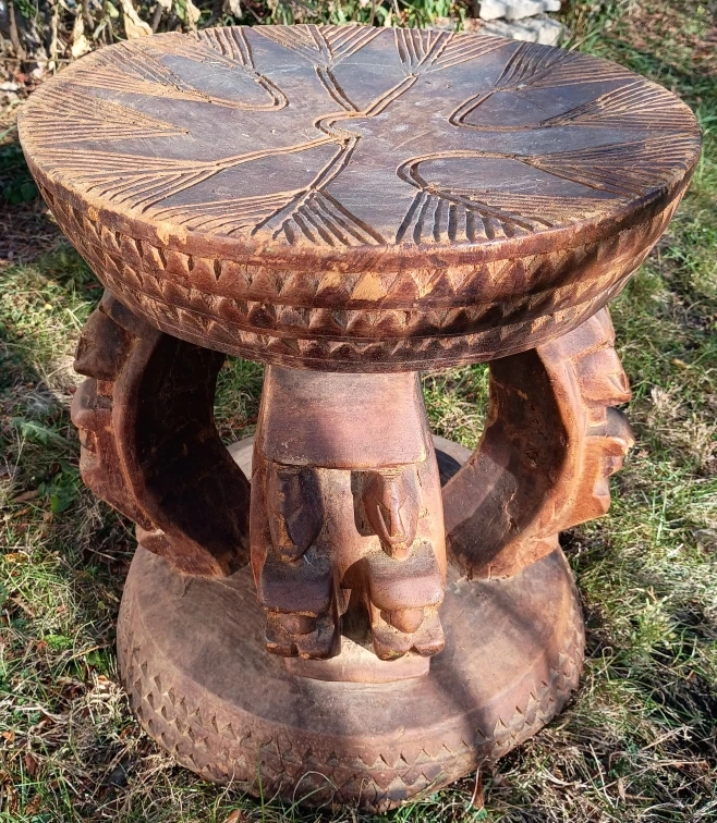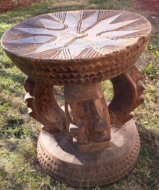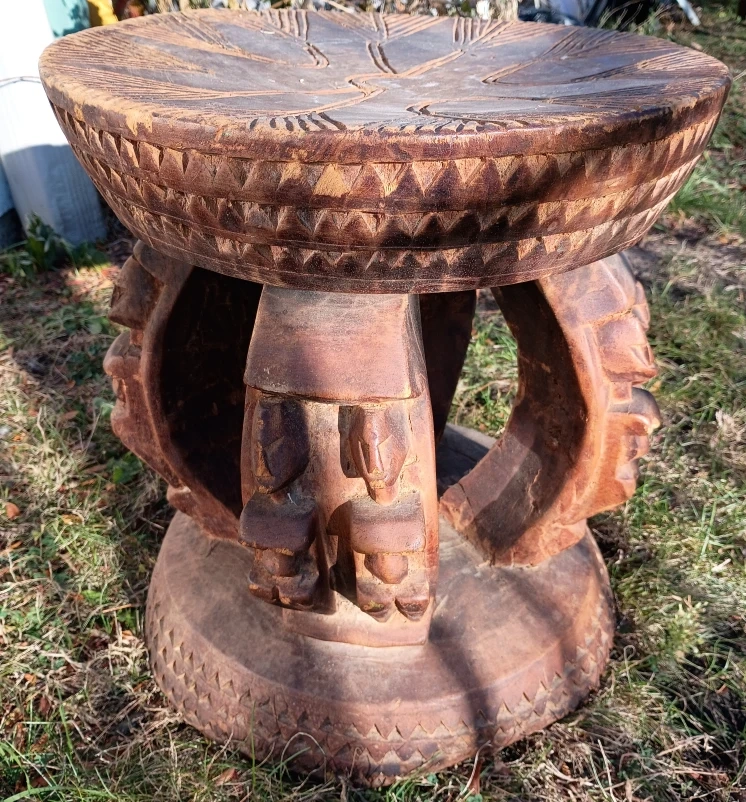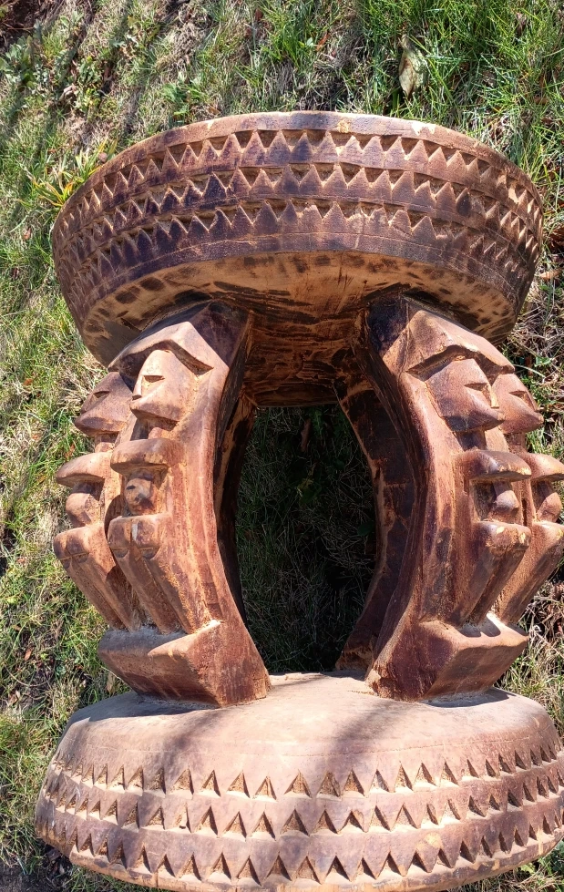 Researching this, some said this was a Dogon priest stool from Mali. I HAD NO IDEA! hand-carved wood stool. It features intricate carvings and a sturdy design. Perfect as a decorative piece or functional seating! I've had this for over 20 years & still love it