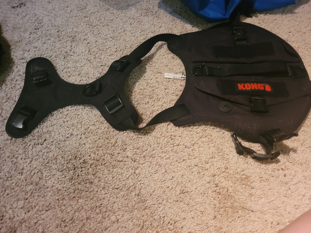 Selling a KONG tactical dog harness in size medium. It is black and appears to be in good condition. Perfect for your furry friend!